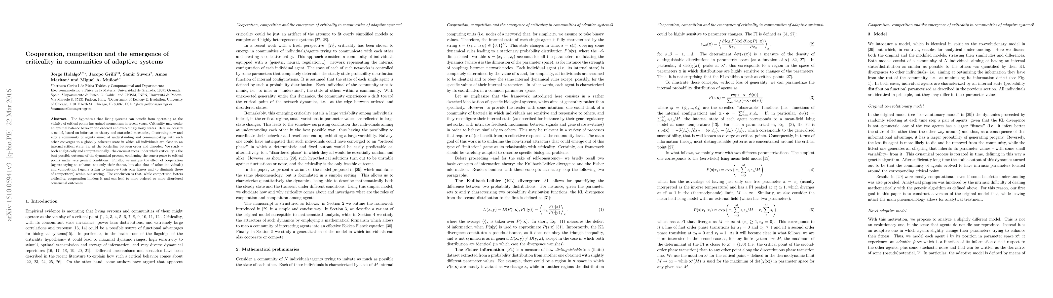 This paper explores how communities of adaptive agents converge to a globally coherent critical state, balancing order and disorder, and investigates the effects of cooperation and competition on this process. It finds that competition promotes criticality, while cooperation can lead to more ordered or disordered outcomes.
