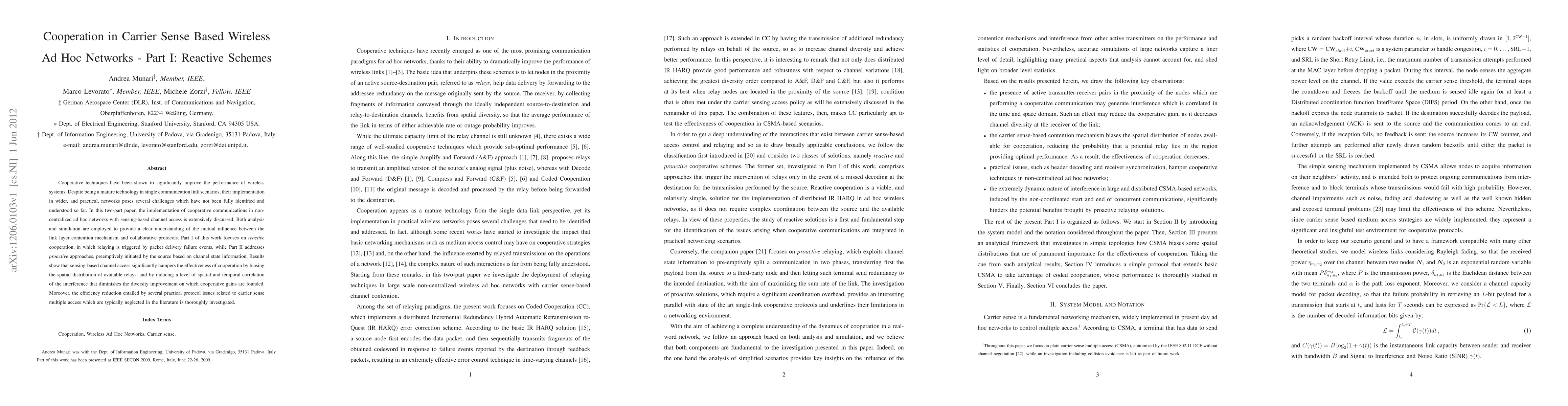 Cooperative techniques have been shown to significantly improve the performance of wireless systems. Despite being a mature technology in single communication link scenarios, their implementation in wider, and practical, networks poses several challenges which have not been fully identified and understood so far. In this two-part paper, the implementation of cooperative communications in non-centralized ad hoc networks with sensing-based channel access is extensively discussed. Both analysis and simulation are employed to provide a clear understanding of the mutual influence between the link layer contention mechanism and collaborative protocols. Part I of this work focuses on reactive cooperation, in which relaying is triggered by packet delivery failure events, while Part II addresses proactive approaches, preemptively initiated by the source based on channel state information. Results show that sensing-based channel access significantly hampers the effectiveness of cooperation by biasing the spatial distribution of available relays, and by inducing a level of spatial and temporal correlation of the interference that diminishes the diversity improvement on which cooperative gains are founded. Moreover, the efficiency reduction entailed by several practical protocol issues related to carrier sense multiple access which are typically neglected in the literature is thoroughly investigated.