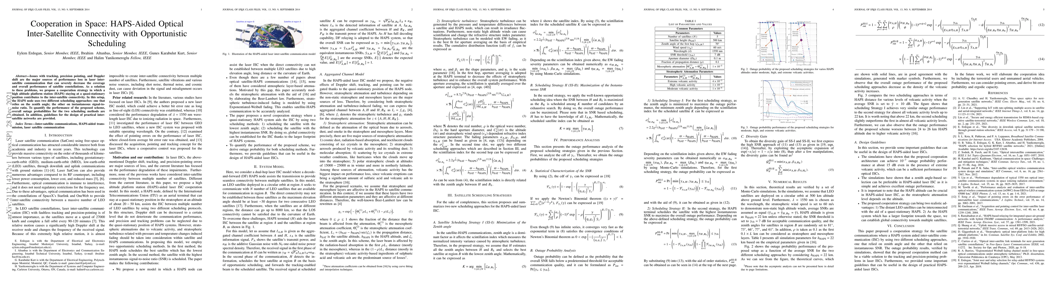 This paper proposes a cooperative strategy using high altitude platform stations (HAPS) to enhance inter-satellite optical connectivity, addressing issues like tracking and Doppler shift. It employs opportunistic scheduling based on zenith angle and signal-to-noise ratio, and provides performance metrics and design guidelines for satellite networks.
