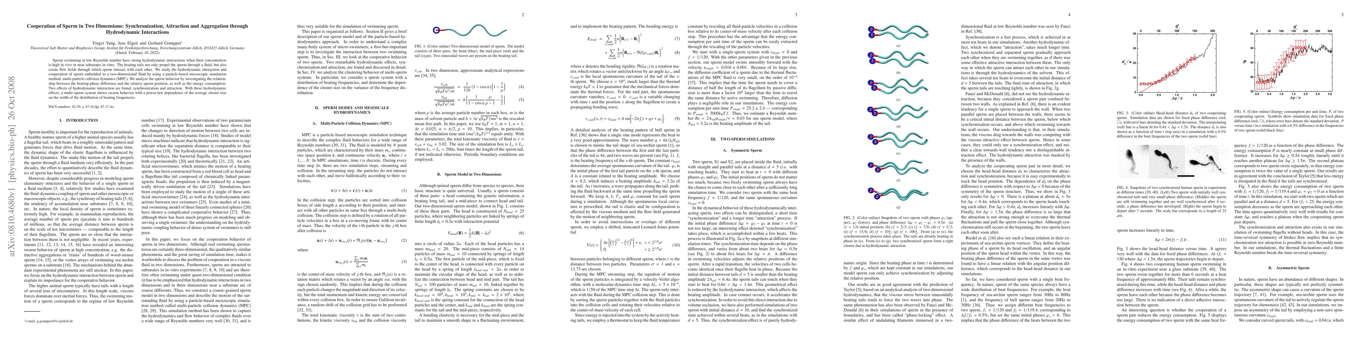 Researchers studied how sperm interact with each other in a fluid using simulation methods, finding that hydrodynamic interactions can cause synchronization and attraction between sperm, leading to swarm behavior.