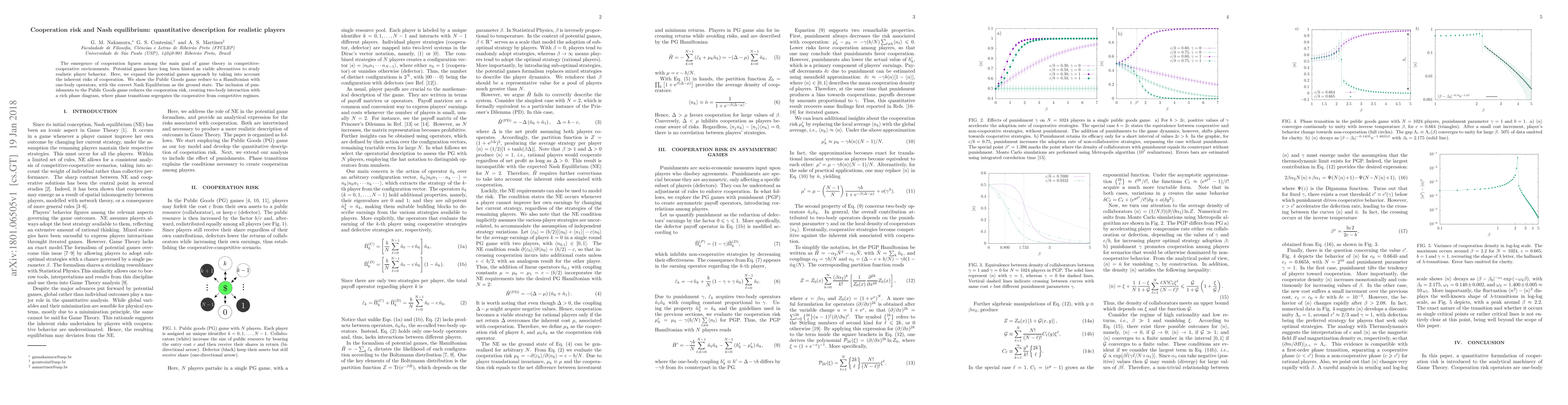 The emergence of cooperation figures among the main goal of game theory in competitive-cooperative environments. Potential games have long been hinted as viable alternatives to study realistic player behavior. Here, we expand the potential games approach by taking into account the inherent risks of cooperation. We show the Public Goods game reduce to a Hamiltonian with one-body operators, with the correct Nash Equilibrium as the ground state. The inclusion of punishments to the Public Goods game reduces the cooperation risk, creating two-body interaction with a rich phase diagram, where phase transitions segregates the cooperative from competitive regimes.