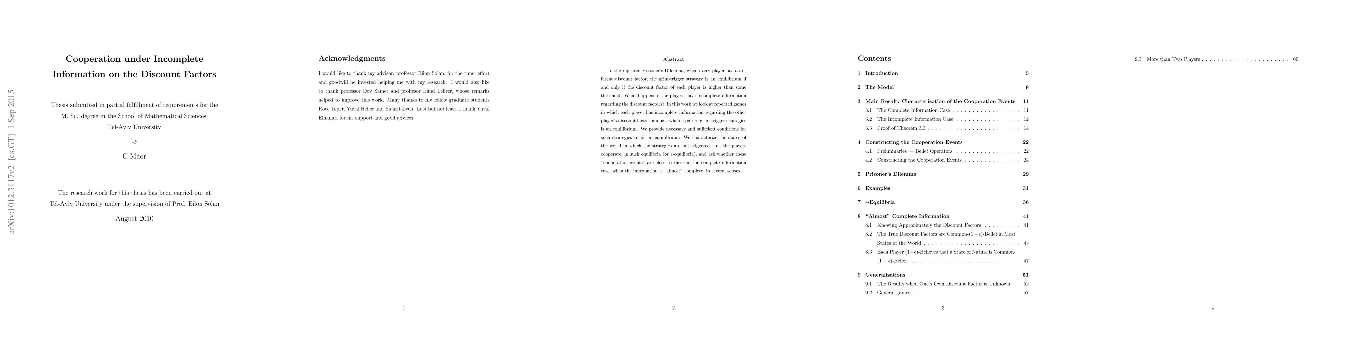 In the repeated Prisoner's Dilemma, when every player has a different discount factor, the grim-trigger strategy is an equilibrium if and only if the discount factor of each player is higher than some threshold. What happens if the players have incomplete information regarding the discount factors? In this work we look at repeated games in which each player has incomplete information regarding the other player's discount factor, and ask when a pair of grim-trigger strategies is an equilibrium. We provide necessary and sufficient conditions for such strategies to be an equilibrium. We characterize the states of the world in which the strategies are not triggered, i.e., the players cooperate, in such equilibria (or $\epsilon$-equilibria), and ask whether these "cooperation events" are close to those in the complete information case, when the information is "almost" complete, in several senses.