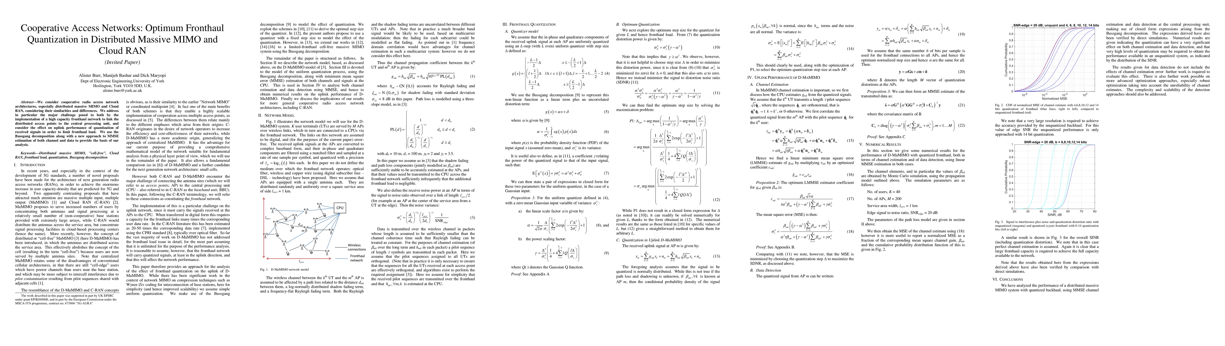 This paper investigates cooperative radio access networks, focusing on distributed massive MIMO and Cloud RAN, and addresses the challenge of high-capacity fronthaul networks. It analyzes the impact of signal quantization on uplink performance to reduce fronthaul load, employing Bussgang decomposition and a novel MMSE estimation approach.