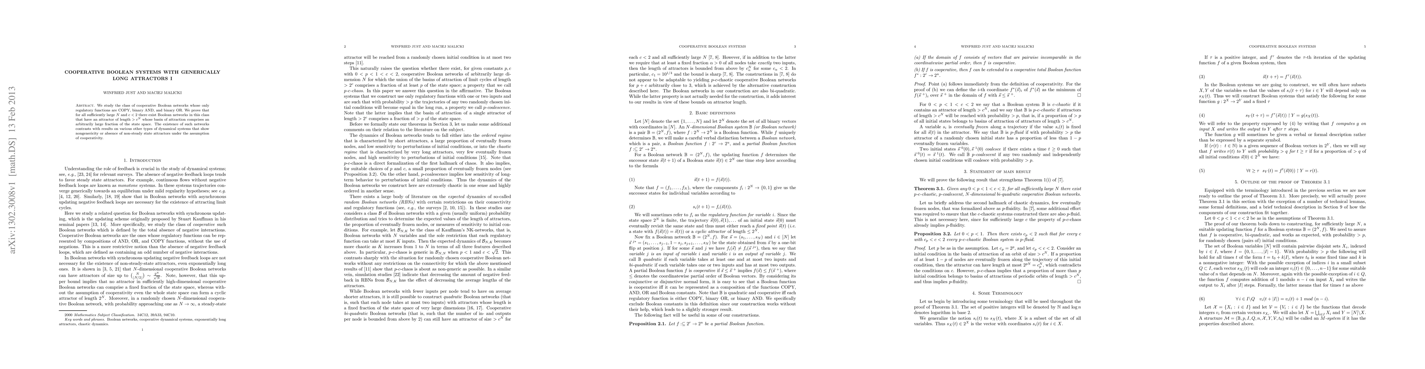 We study the class of cooperative Boolean networks whose only regulatory functions are COPY, binary AND, and binary OR. We prove that for all sufficiently large N and c < 2 there exist Boolean networks in this class that have an attractor of length > c^N whose basin of attraction comprises an arbitrarily large fraction of the state space. The existence of such networks contrasts with results on various other types of dynamical systems that show nongenericity or absence of non-steady state attractors under the assumption of cooperativity.