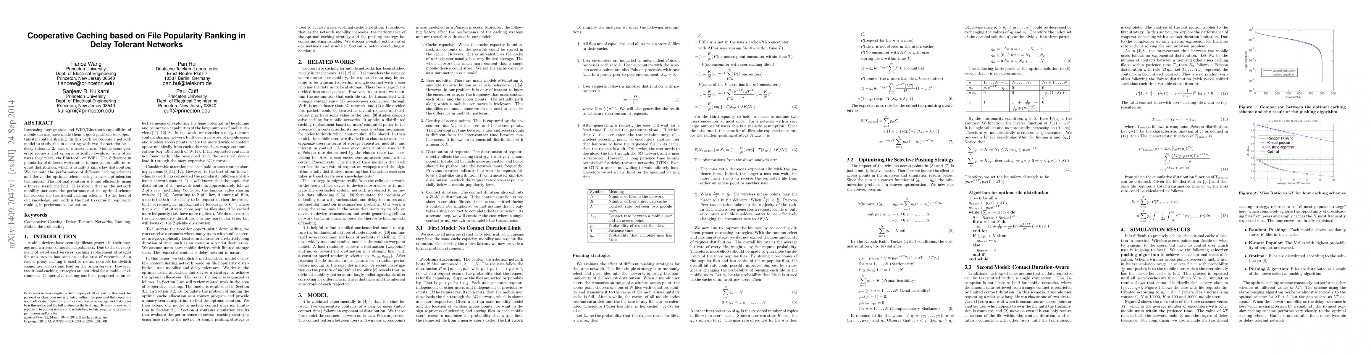 Increasing storage sizes and WiFi/Bluetooth capabilities of mobile devices have made them a good platform for opportunistic content sharing. In this work we propose a network model to study this in a setting with two characteristics: 1. delay tolerant; 2. lack of infrastructure. Mobile users generate requests and opportunistically download from other users they meet, via Bluetooth or WiFi. The difference in popularity of different web content induces a non-uniform request distribution, which is usually a Zipf's law distribution. We evaluate the performance of different caching schemes and derive the optimal scheme using convex optimization techniques. The optimal solution is found efficiently using a binary search method. It is shown that as the network mobility increases, the performance of the optimal scheme far exceeds the traditional caching scheme. To the best of our knowledge, our work is the first to consider popularity ranking in performance evaluation.