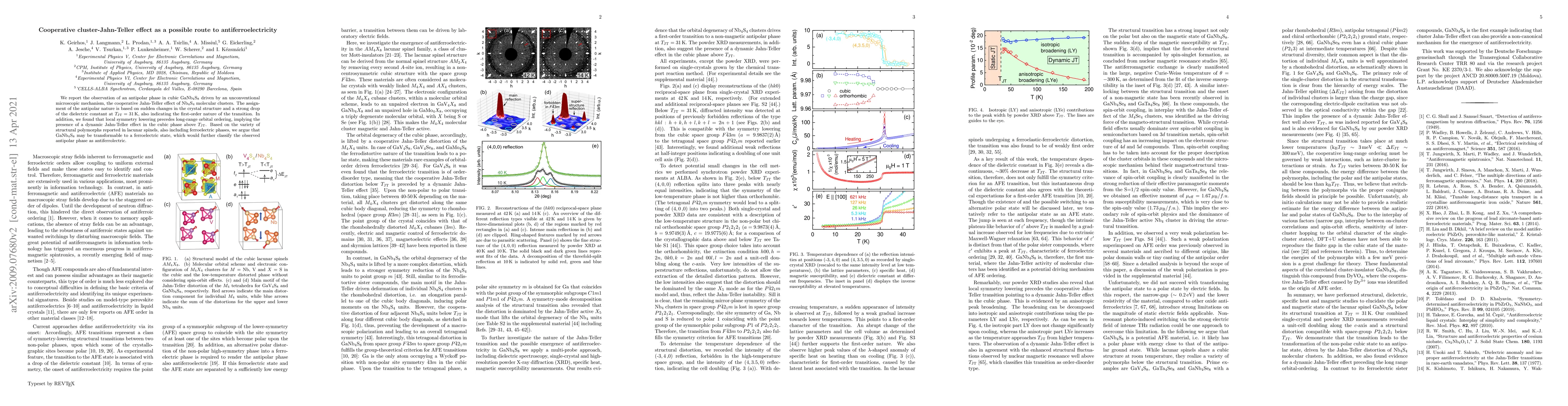 This paper reports the emergence of an antipolar phase in cubic GaNb$_4$S$_8$ due to a cooperative cluster-Jahn-Teller effect, characterized by structural changes and a significant drop in dielectric constant at 31 K, indicating a first-order transition. The study suggests potential for GaNb$_4$S$_8$ to transition to a ferroelectric state, classifying the observed antipolar phase as antiferroelectric.