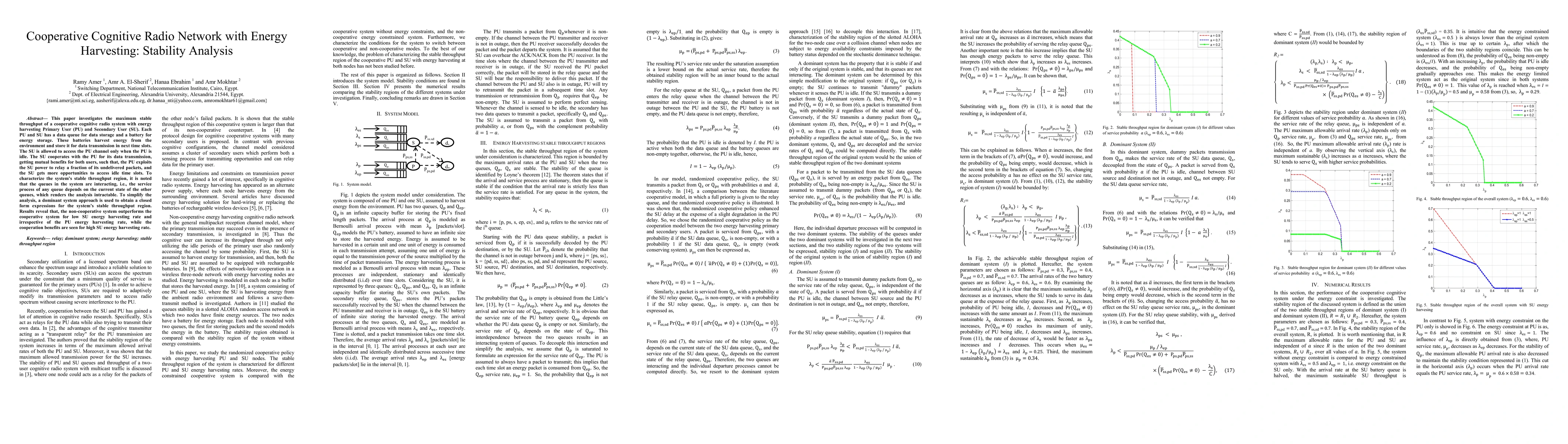 This paper investigates the stability of a cooperative cognitive radio network that combines energy harvesting with data transmission, showing how secondary users can access primary user channels more frequently when both share resources.