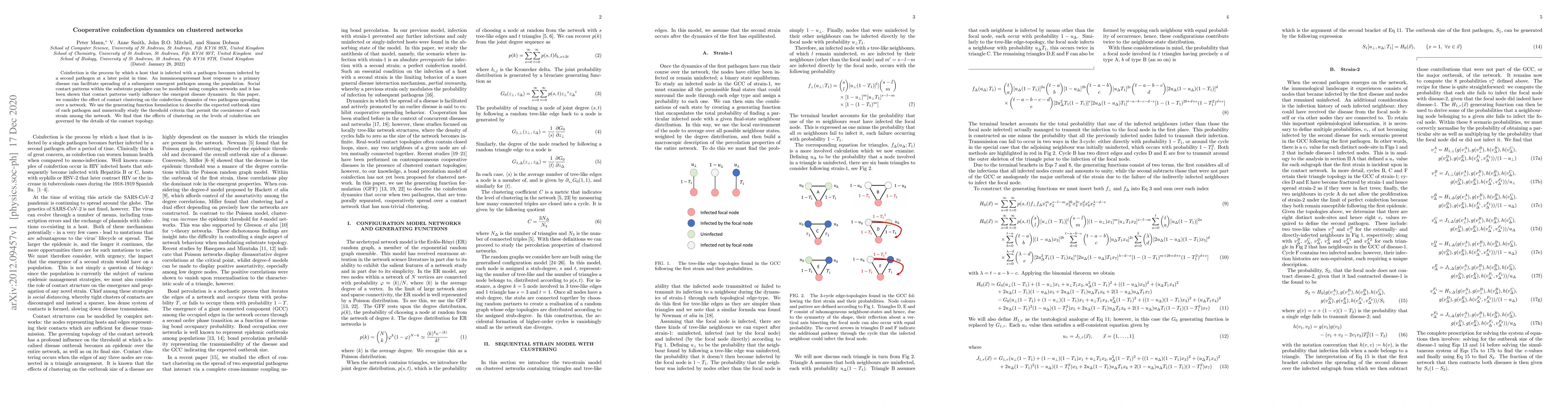 This paper investigates how contact clustering in social networks influences the dynamics of coinfection by two pathogens. Using generating functions, it identifies threshold criteria for pathogen coexistence and finds that network topology significantly affects coinfection levels.