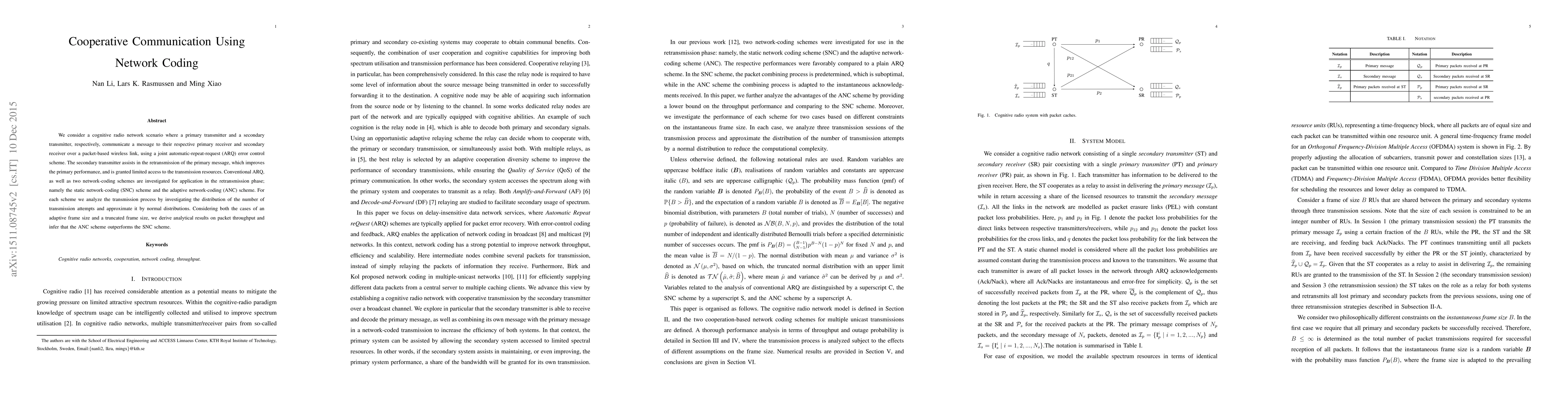 This paper explores cooperative communication in cognitive radio networks using network coding for improved message delivery. It compares static and adaptive network-coding schemes in a joint ARQ framework, finding that adaptive network coding significantly outperforms static coding in terms of packet throughput.