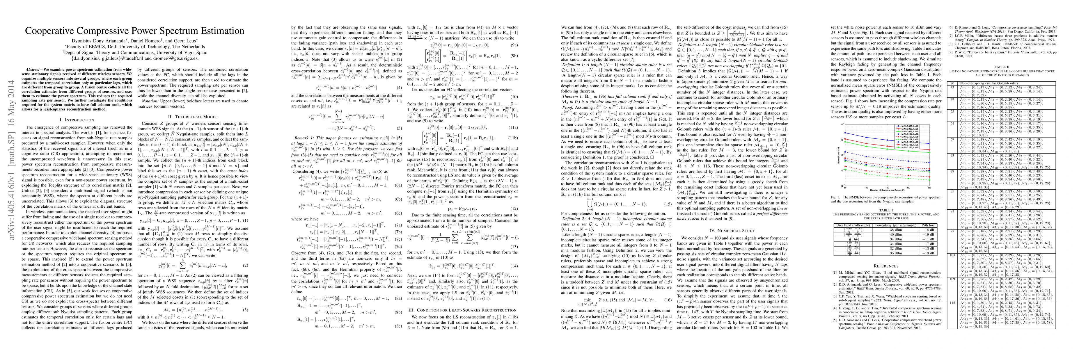 This paper explores cooperative power spectrum estimation using multiple wireless sensors organized into groups, each estimating temporal correlation at different lags. A fusion centre combines these estimates to reconstruct the power spectrum, reducing the per-sensor sampling rate and ensuring full column rank for effective least-squares reconstruction.