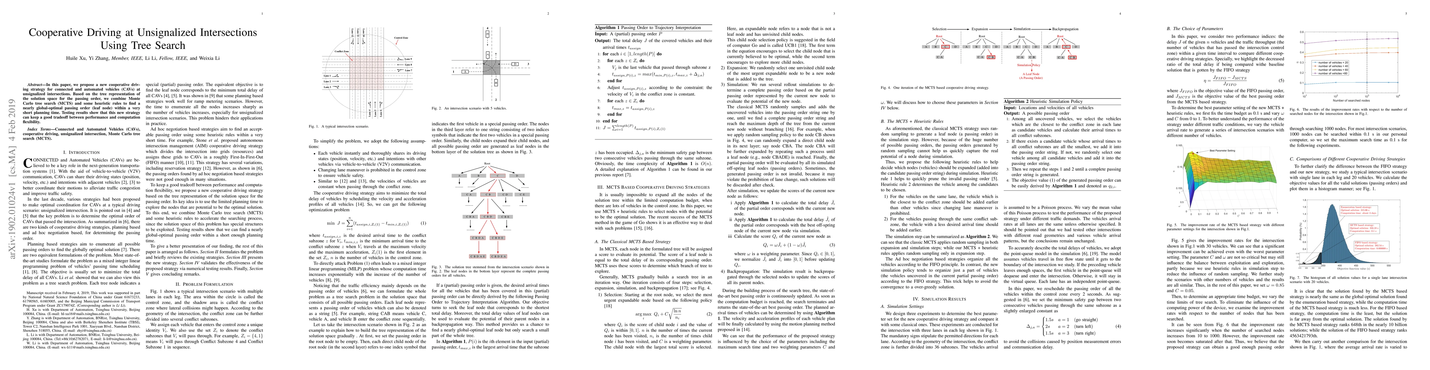 This paper introduces a cooperative driving strategy for connected and automated vehicles at unsignalized intersections, utilizing Monte Carlo tree search combined with heuristic rules to determine an optimal passing order efficiently. The proposed method balances performance and computational flexibility, as demonstrated by testing results.