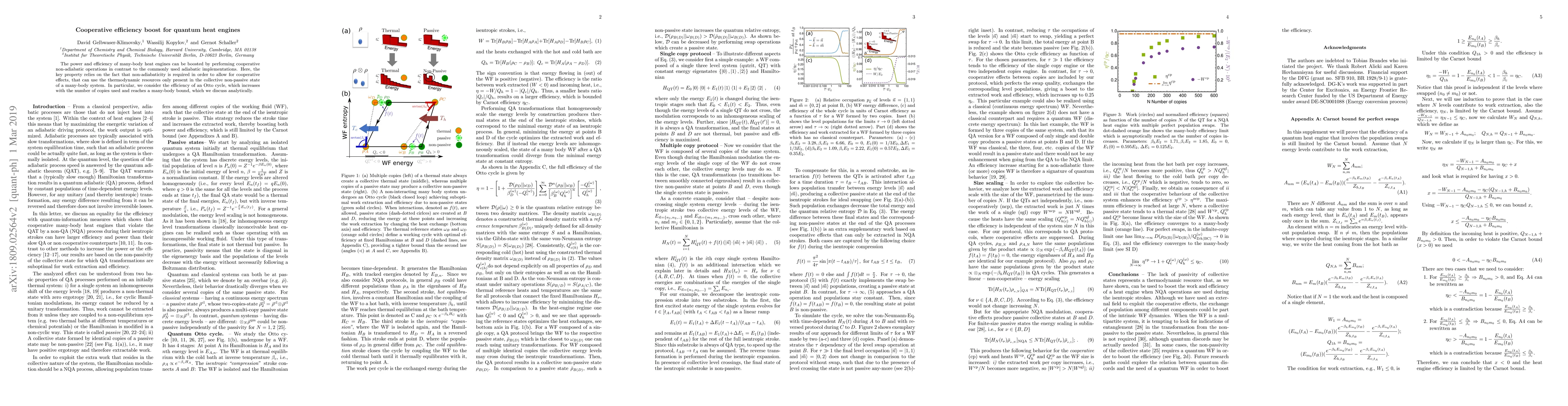 The power and efficiency of many-body heat engines can be boosted by performing cooperative non-adiabatic operations in contrast to the commonly used adiabatic implementations. Here, the key property relies on the fact that non-adiabaticity is required in order to allow for cooperative effects, that can use the thermodynamic resources only present in the collective non-passive state of a many-body system. In particular, we consider the efficiency of an Otto cycle, which increases with the number of copies used and reaches a many-body bound, which we discuss analytically.