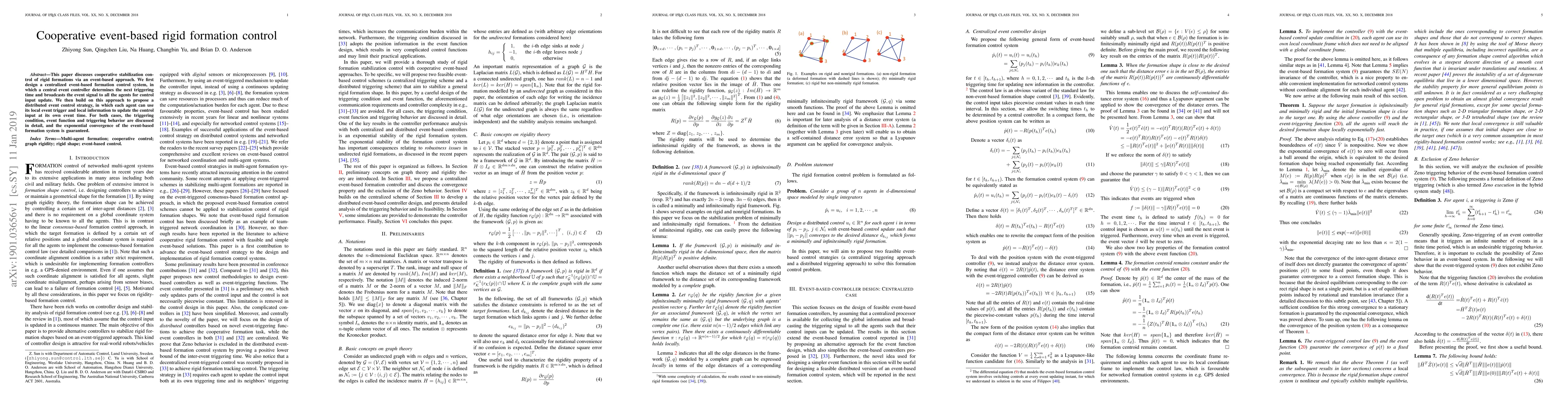 The paper presents novel event-based control strategies for rigid formation stabilization in multi-agent systems, ensuring exponential convergence and excluding Zeno behavior in both centralized and distributed settings.