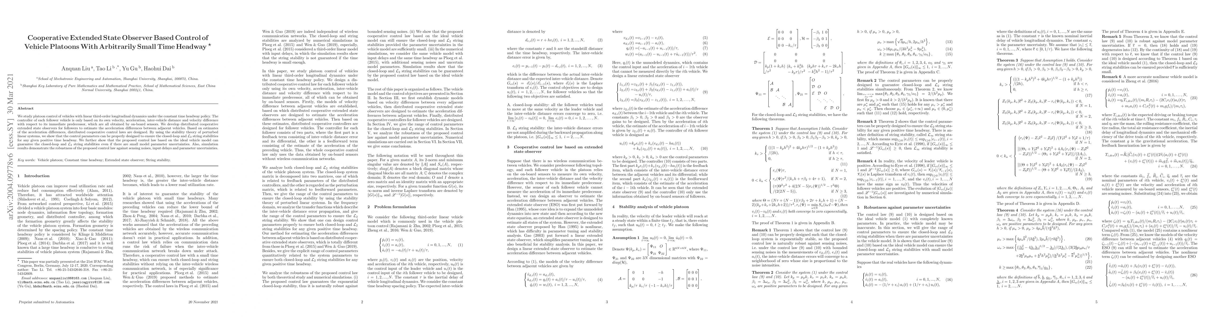 This paper proposes a cooperative extended state observer-based control method for vehicle platoons to maintain arbitrarily small time headways. The control law for each follower vehicle uses local sensor data and distributed cooperative observers to estimate acceleration differences, ensuring stability and robustness against model uncertainties, sensing noises, and delays.