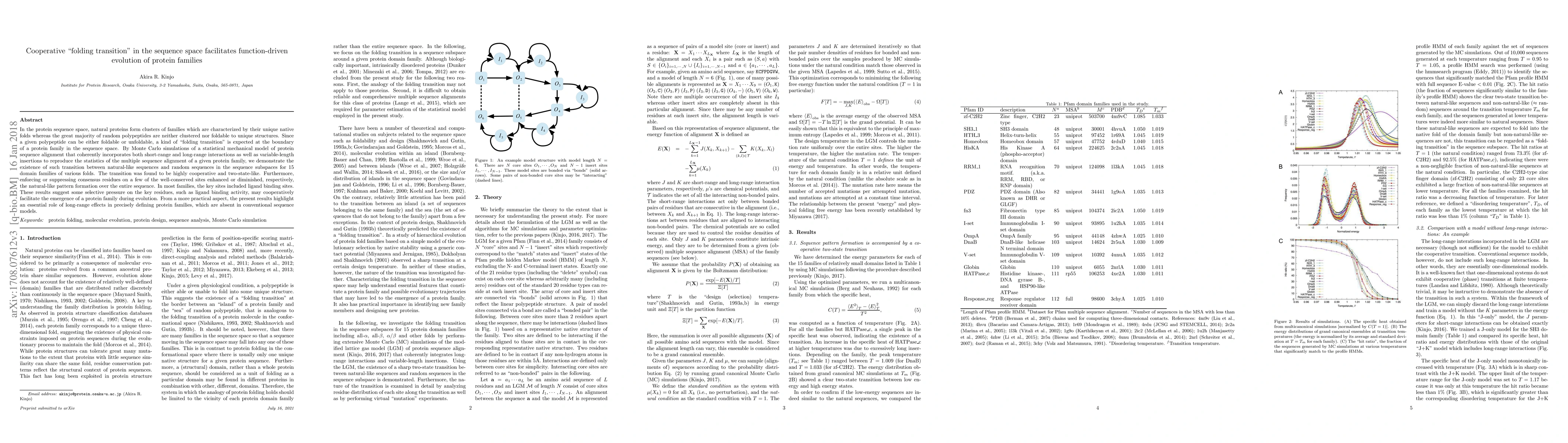 This study demonstrates a cooperative "folding transition" in protein sequence space that facilitates the evolution of protein families, showing a highly cooperative and two-state-like transition between natural and random sequences. The study highlights the role of long-range interactions and conserved residues, particularly ligand binding sites, in defining protein families.