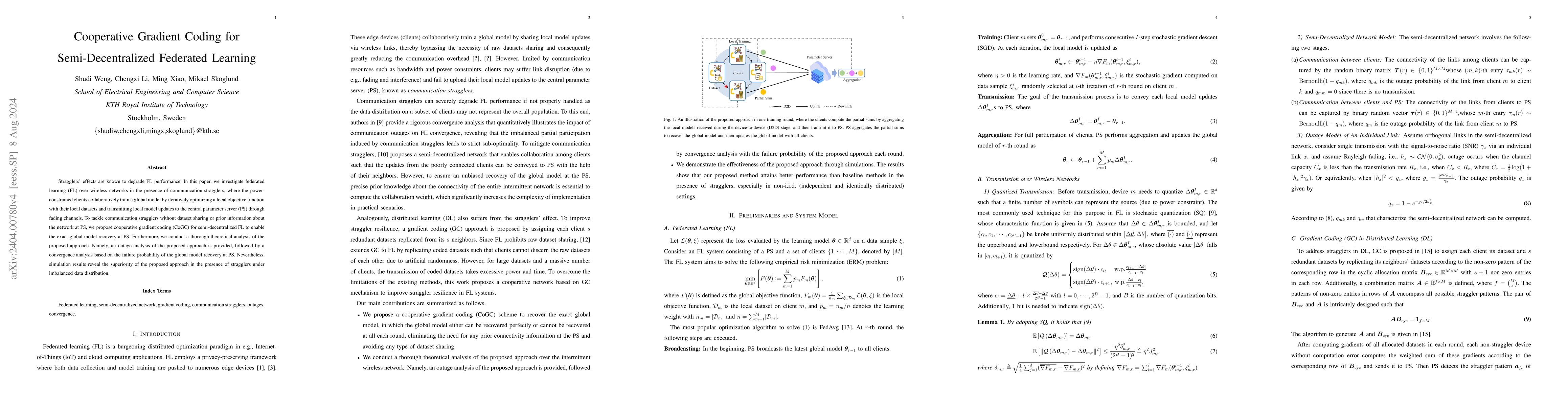 We investigate federated learning (FL) in the presence of stragglers, with emphasis on wireless scenarios where the power-constrained edge devices collaboratively train a global model on their local datasets and transmit local model updates through fading channels. To tackle stragglers resulting from link disruptions without requiring accurate prior information on connectivity or dataset sharing, we propose a gradient coding (GC) scheme based on cooperative communication, which remains valid for general collaborative federated learning. Furthermore, we conduct an outage analysis of the proposed scheme, based on which we conduct the convergence analysis. The simulation results reveal the superiority of the proposed strategy in the presence of stragglers, especially under imbalanced data distribution.