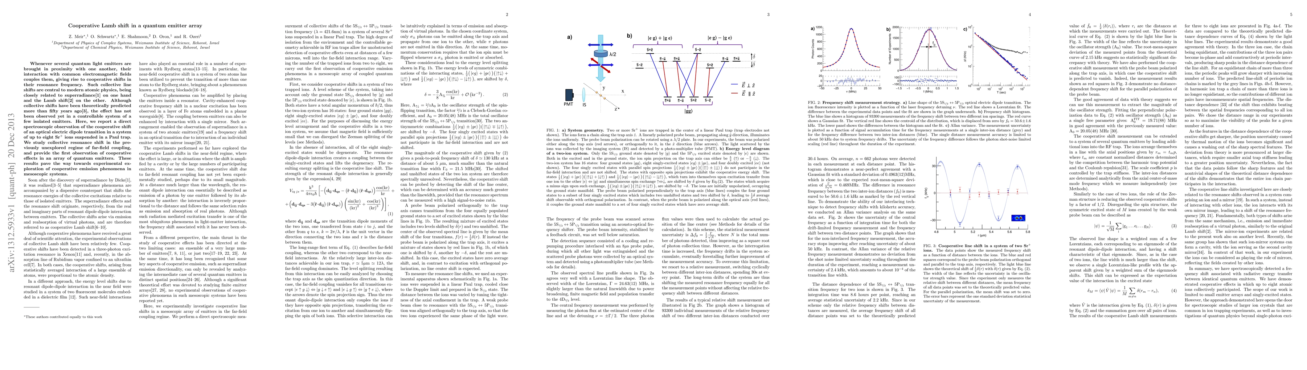 This paper reports the first direct spectroscopic observation of cooperative shifts in resonance frequency among up to eight Sr ions in a Paul trap, demonstrating collective effects in far-field coupling. These findings open new avenues for studying cooperative emission phenomena in mesoscopic quantum emitter arrays.