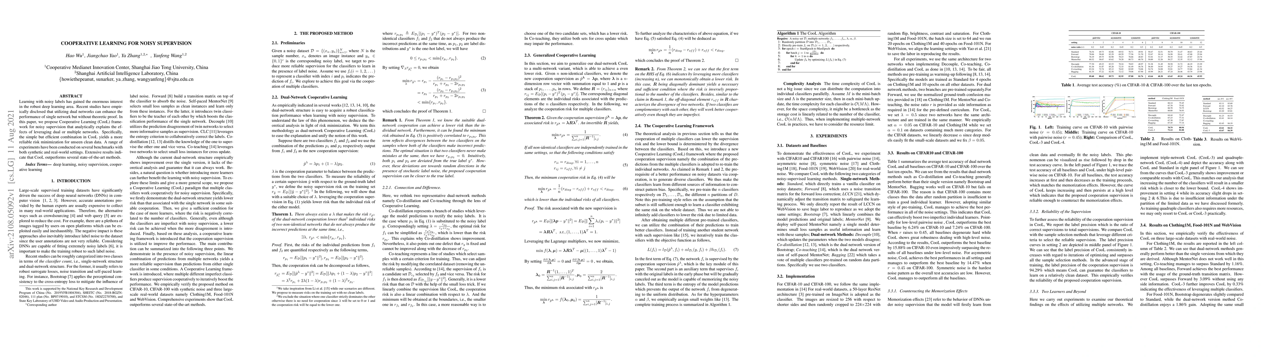 Learning with noisy labels has gained the enormous interest in the robust deep learning area. Recent studies have empirically disclosed that utilizing dual networks can enhance the performance of single network but without theoretic proof. In this paper, we propose Cooperative Learning (CooL) framework for noisy supervision that analytically explains the effects of leveraging dual or multiple networks. Specifically, the simple but efficient combination in CooL yields a more reliable risk minimization for unseen clean data. A range of experiments have been conducted on several benchmarks with both synthetic and real-world settings. Extensive results indicate that CooL outperforms several state-of-the-art methods.