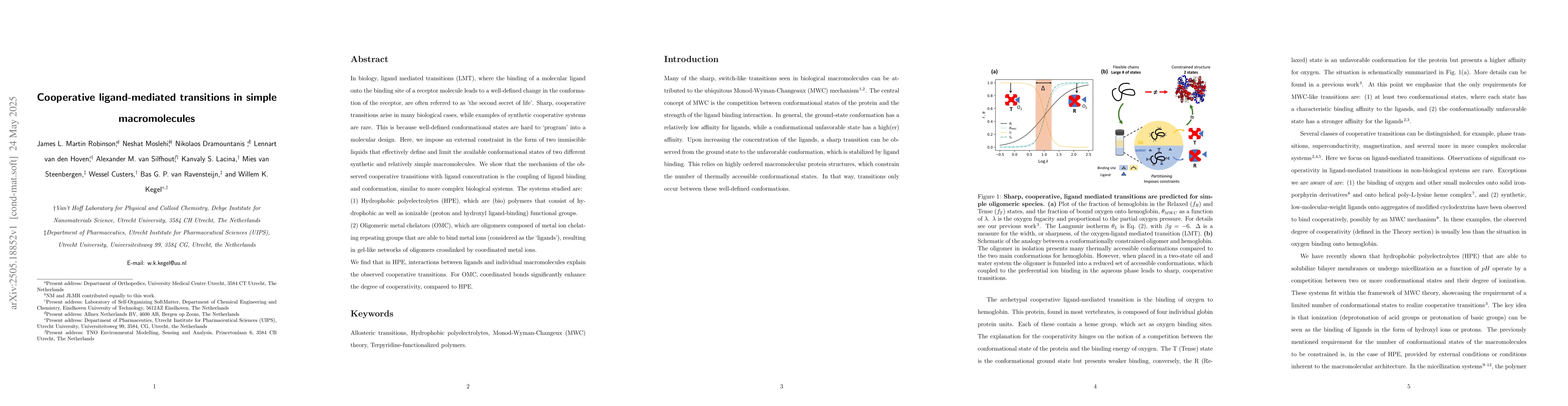 Researchers created simple macromolecules that exhibit cooperative transitions in response to ligand binding, mimicking biological systems, with hydrophobic polyelectrolytes showing less cooperativity than oligomeric metal chelators.