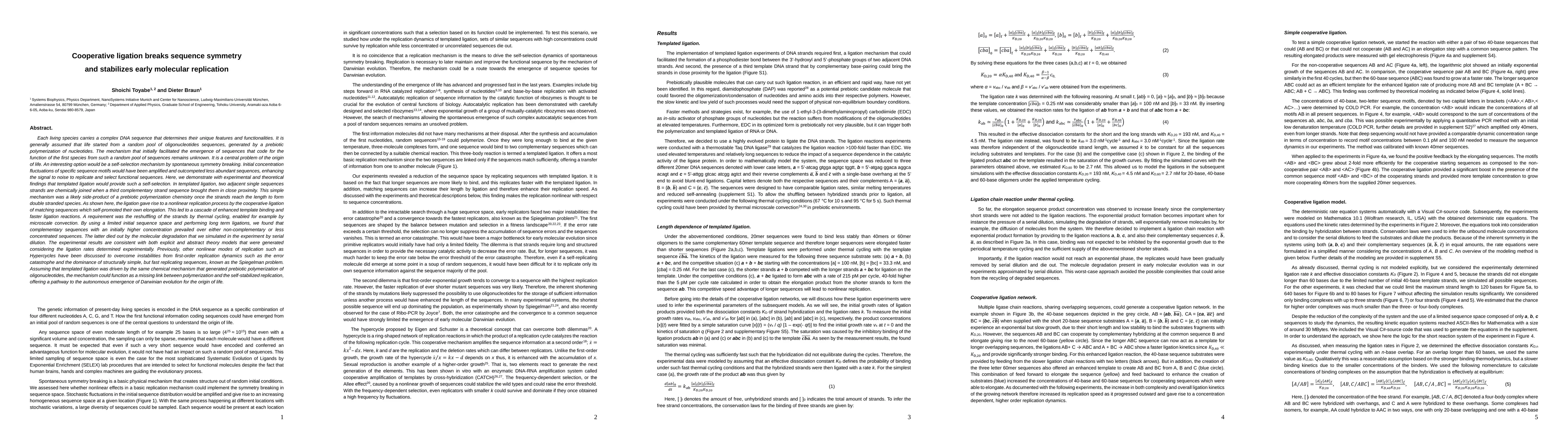 This paper proposes that cooperative ligation, where complementary strands are joined by a third sequence, could have facilitated the emergence of functional DNA sequences from a random pool, breaking sequence symmetry and stabilizing early molecular replication. The mechanism, driven by prebiotic polymerization chemistry, could have initiated a nonlinear replication process, promoting the self-stabilization of sequences and potentially leading to the autonomous emergence of Darwinian evolution.