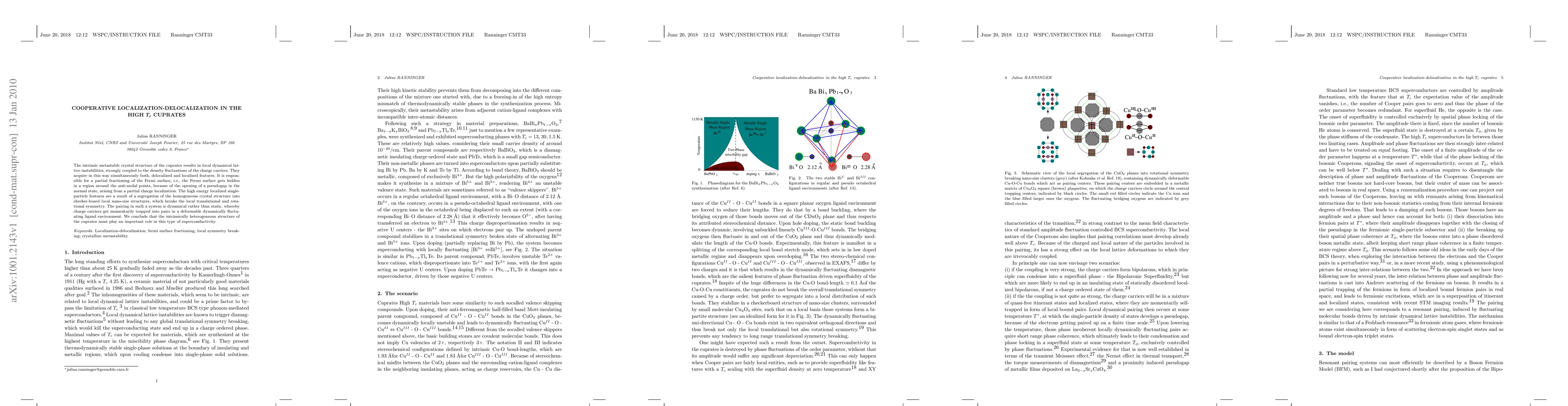 The intrinsic metastable crystal structure of the cuprates results in local dynamical lattice instabilities, strongly coupled to the density fluctuations of the charge carriers. They acquire in this way simultaneously both, delocalized and localized features. It is responsible for a partial fractioning of the Fermi surface, i.e., the Fermi surface gets hidden in a region around the anti-nodal points, because of the opening of a pseudogap in the normal state, arising from a partial charge localization. The high energy localized single-particle features are a result of a segregation of the homogeneous crystal structure into checker-board local nano-size structures, which breaks the local translational and rotational symmetry. The pairing in such a system is dynamical rather than static, whereby charge carriers get momentarily trapped into pairs in a deformable dynamically fluctuating ligand environment. We conclude that the intrinsically heterogeneous structure of the cuprates must play an important role in this type of superconductivity.