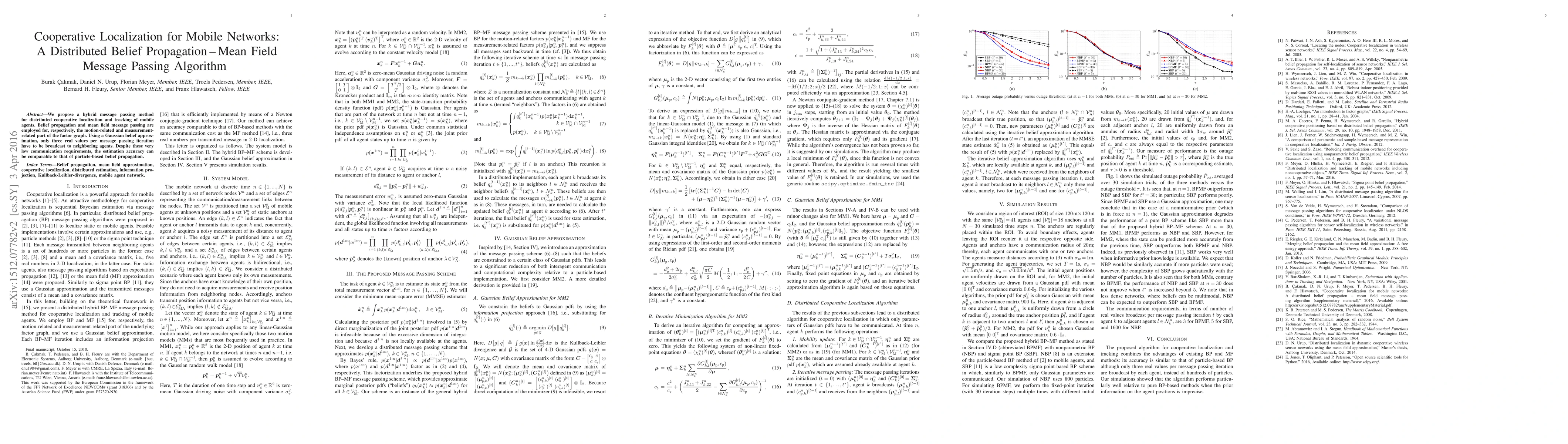 The proposed algorithm for cooperativelocalization and tracking combines the advantages of existing belief propagation (BP) and message passing (MP) methods.
