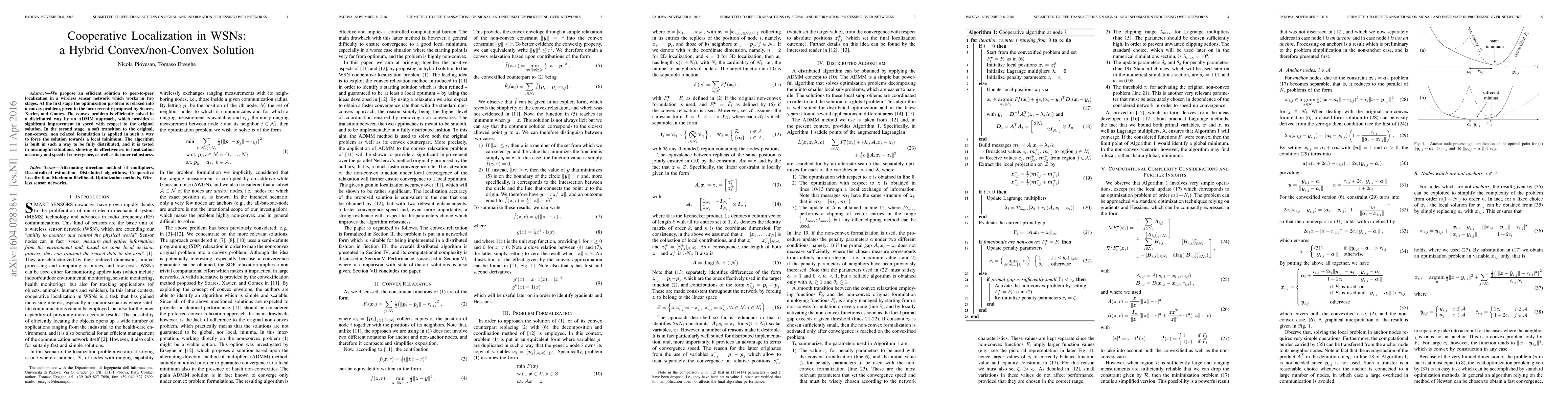 This paper proposes a hybrid convex/non-convex algorithm for peer-to-peer localization in wireless sensor networks, utilizing distributed ADMM for the convex stage and a soft transition to the non-convex stage to enhance localization accuracy and convergence speed. The fully distributed algorithm demonstrates effectiveness in practical scenarios.
