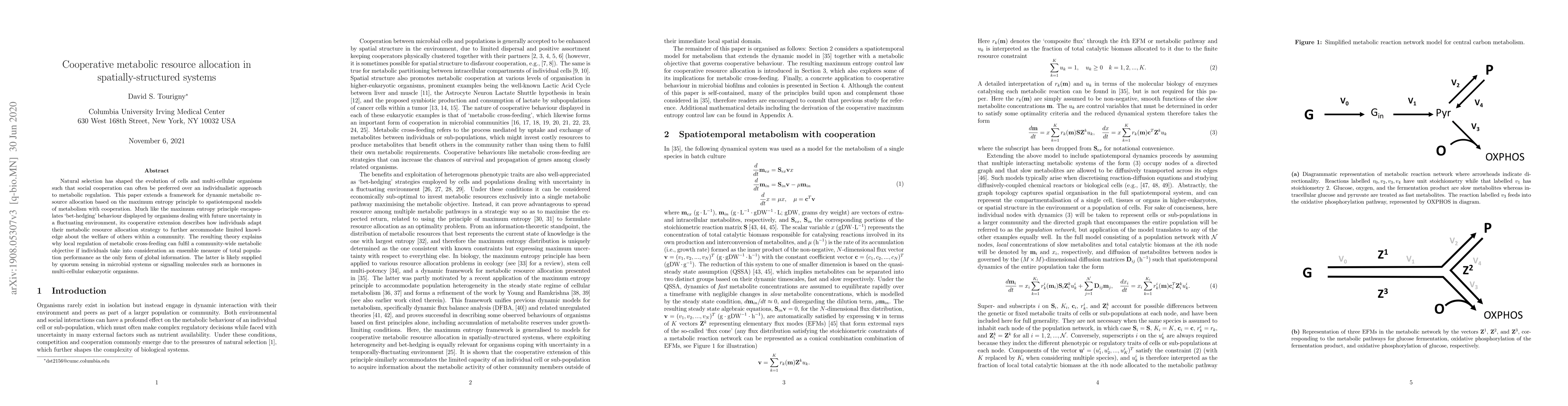 This paper develops a cooperative metabolic resource allocation framework based on the maximum entropy principle for spatially-structured systems, explaining how local metabolic cross-feeding can achieve community-wide metabolic goals through consideration of an ensemble measure of total population performance. This theory highlights the role of quorum sensing and signalling molecules in guiding cooperative metabolic strategies.