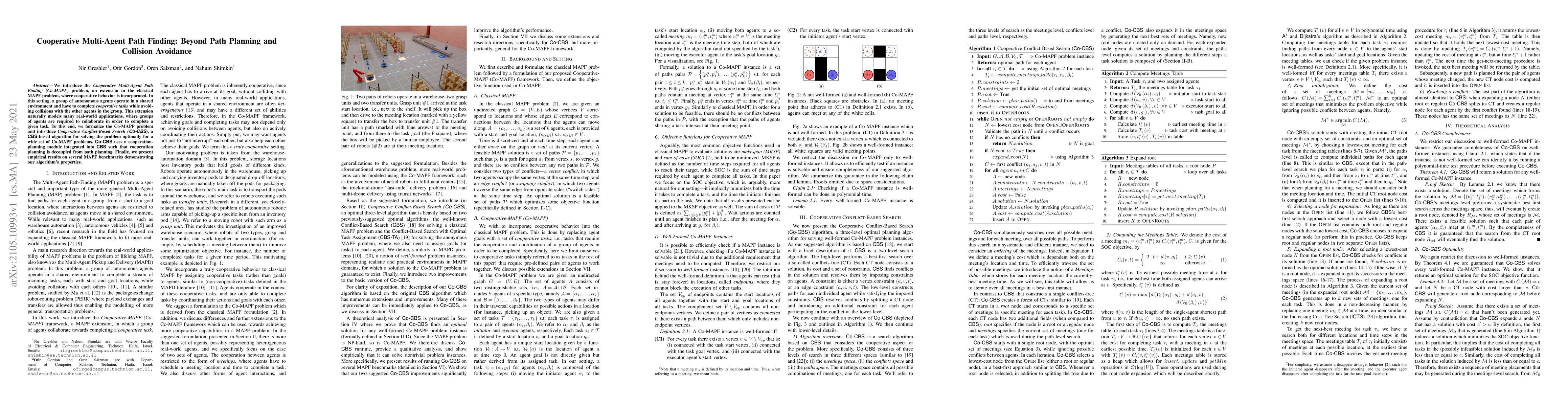 This paper introduces the Cooperative Multi-Agent Path Finding (Co-MAPF) problem, extending classical MAPF to include cooperative behavior among agents. It presents Co-CBS, a novel algorithm for solving Co-MAPF optimally, decoupling cooperation planning from path planning, and demonstrates its effectiveness through empirical results.