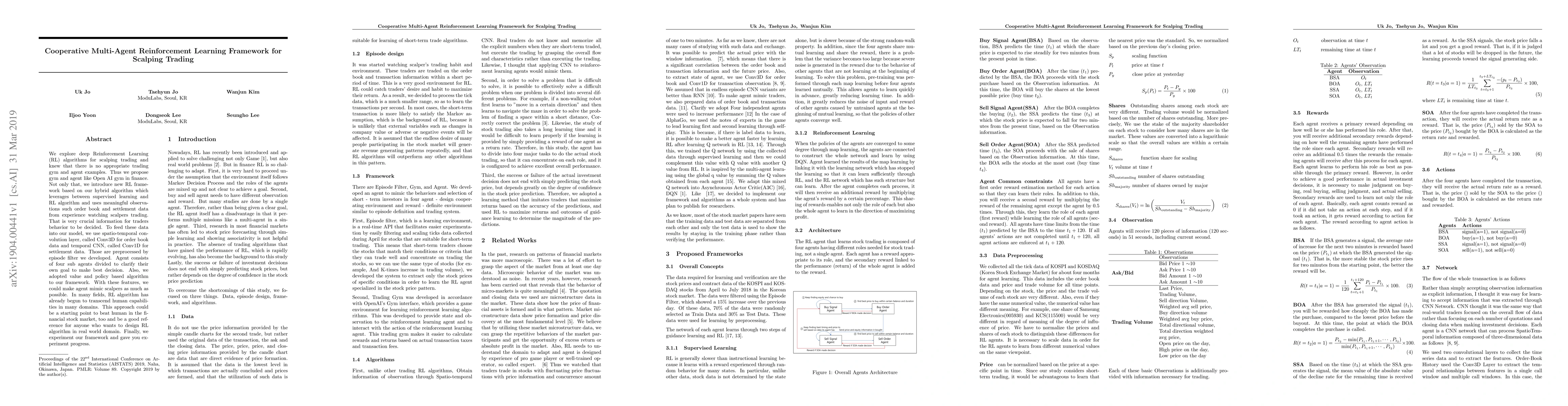 We explore deep Reinforcement Learning(RL) algorithms for scalping trading and knew that there is no appropriate trading gym and agent examples. Thus we propose gym and agent like Open AI gym in finance. Not only that, we introduce new RL framework based on our hybrid algorithm which leverages between supervised learning and RL algorithm and uses meaningful observations such order book and settlement data from experience watching scalpers trading. That is very crucial information for traders behavior to be decided. To feed these data into our model, we use spatio-temporal convolution layer, called Conv3D for order book data and temporal CNN, called Conv1D for settlement data. Those are preprocessed by episode filter we developed. Agent consists of four sub agents divided to clarify their own goal to make best decision. Also, we adopted value and policy based algorithm to our framework. With these features, we could make agent mimic scalpers as much as possible. In many fields, RL algorithm has already begun to transcend human capabilities in many domains. This approach could be a starting point to beat human in the financial stock market, too and be a good reference for anyone who wants to design RL algorithm in real world domain. Finally, weexperiment our framework and gave you experiment progress.
