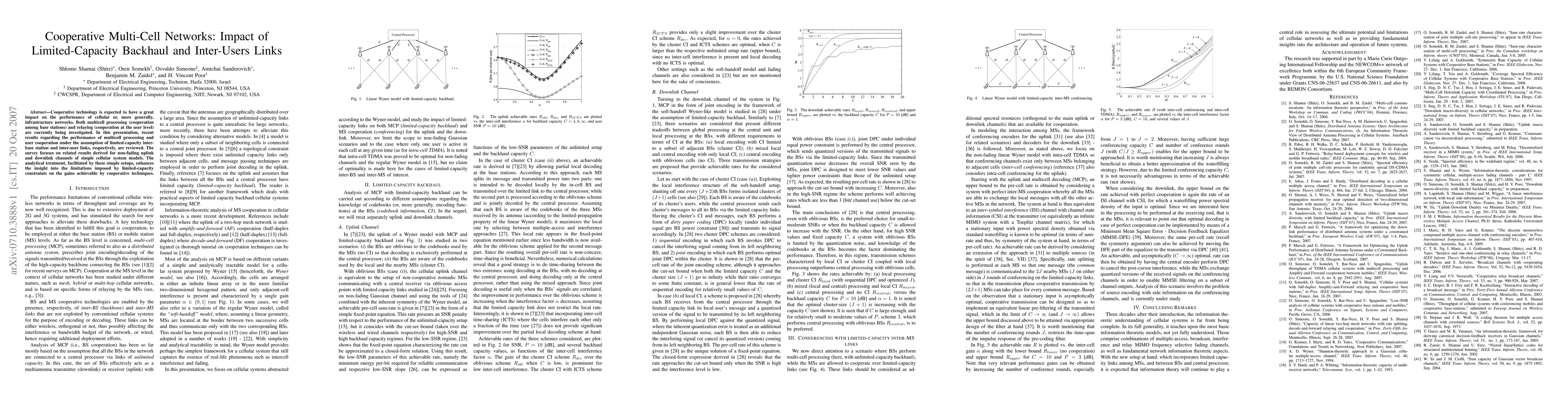 This paper reviews recent findings on the performance of cooperative multi-cell networks, focusing on multicell processing and user cooperation under limited-capacity backhaul and inter-user links. Analytical insights from simple cellular system models highlight the constraints imposed by these limitations on cooperative gains.