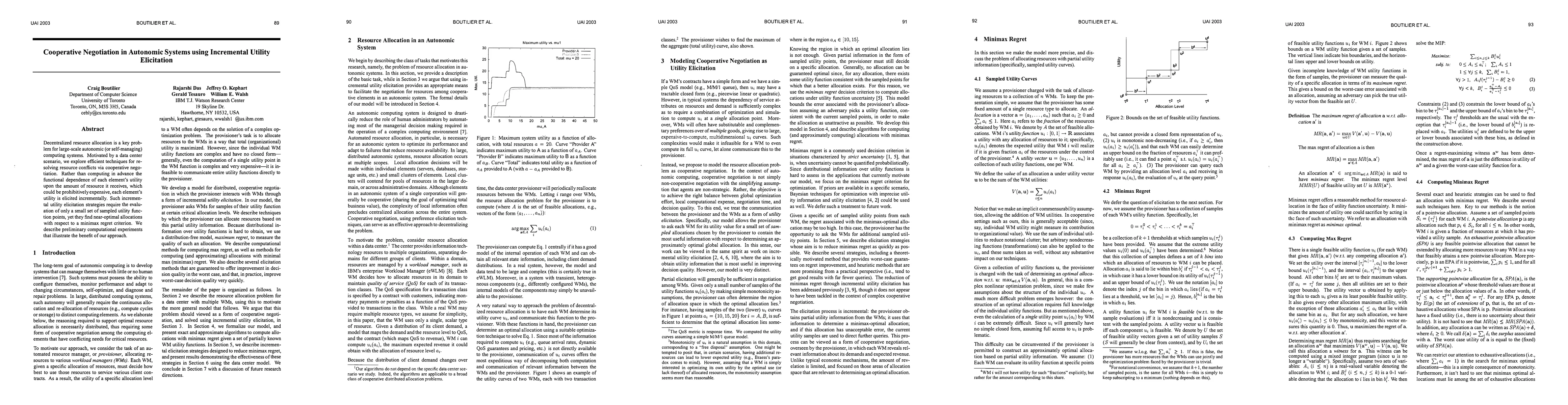 This research explores efficient techniques for resolving resource conflicts in large-scale autonomic computing systems through cooperative negotiation using incremental utility elicitation strategies. These methods find near-optimal allocations with minimal computation required.