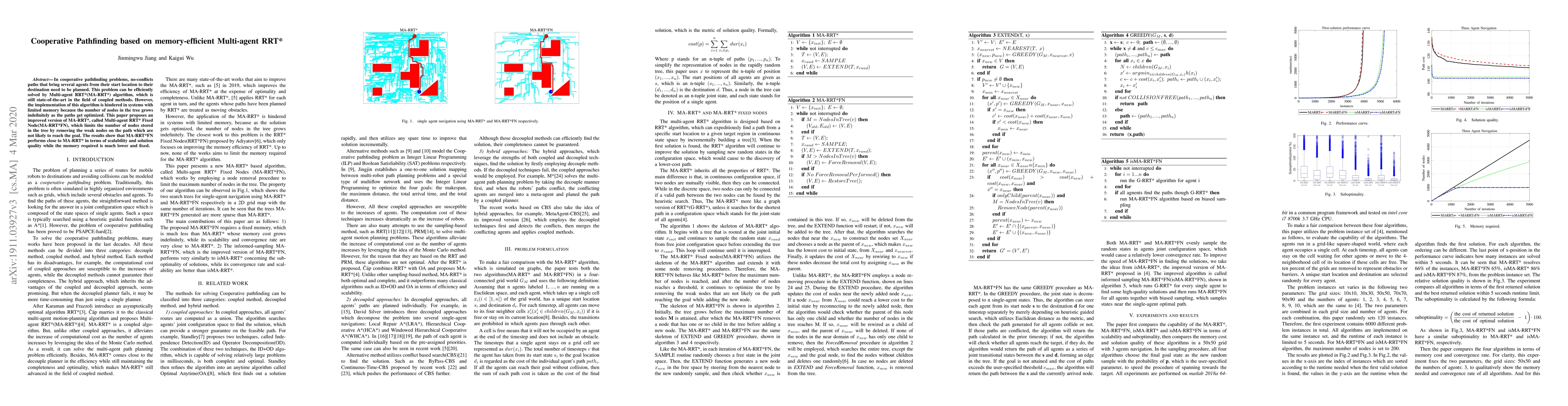 In cooperative pathfinding problems, no-conflicts paths that bring several agents from their start location to their destination need to be planned. This problem can be efficiently solved by Multi-agent RRT*(MA-RRT*) algorithm, which is still state-of-the-art in the field of coupled methods. However, the implementation of this algorithm is hindered in systems with limited memory because the number of nodes in the tree grows indefinitely as the paths get optimized. This paper proposes an improved version of MA-RRT*, called Multi-agent RRT* Fixed Node(MA-RRT*FN), which limits the number of nodes stored in the tree by removing the weak nodes on the path which are not likely to reach the goal. The results show that MA-RRT*FN performs close to MA-RRT* in terms of scalability and solution quality while the memory required is much lower and fixed.