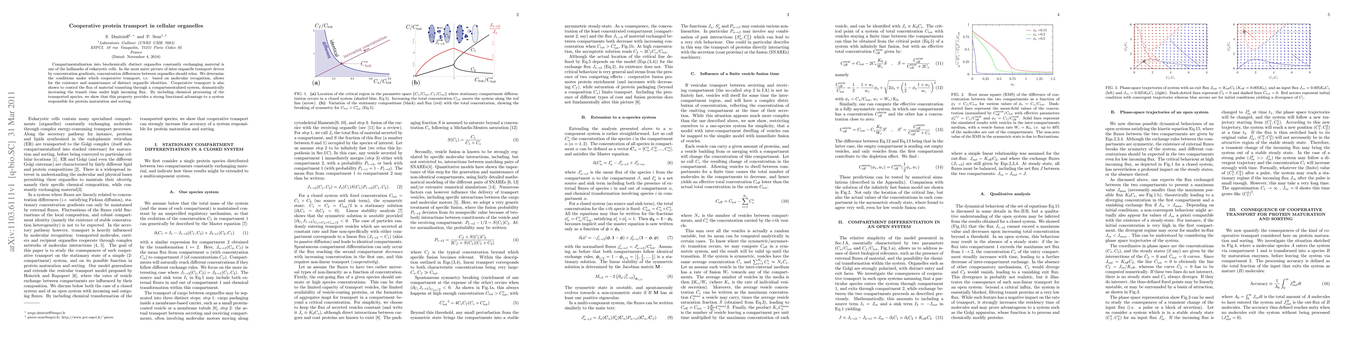 This paper explores how cooperative transport, driven by molecular recognition, enables the maintenance of distinct identities among eukaryotic cell organelles despite material exchange. It demonstrates that cooperative transport can significantly increase transit time under high material fluxes, providing a functional advantage in protein maturation and sorting processes.