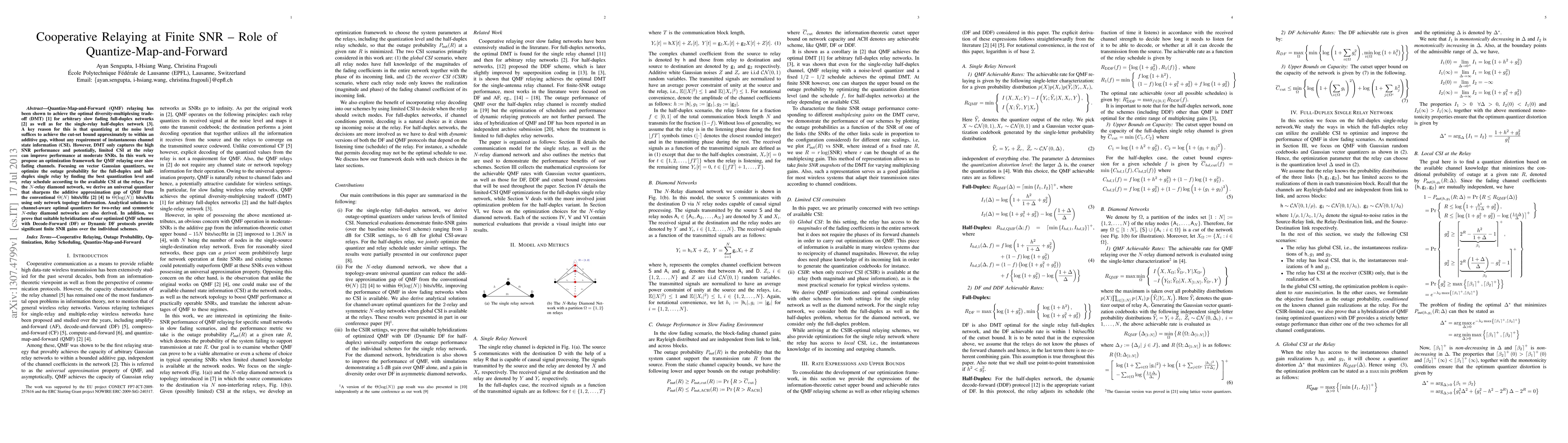 This paper explores optimizing Quantize-Map-and-Forward (QMF) relaying for both full-duplex and half-duplex networks at finite Signal-to-Noise Ratios (SNR). It proposes an optimization framework to minimize outage probability by determining optimal quantization levels and relay schedules based on available Channel State Information (CSI).