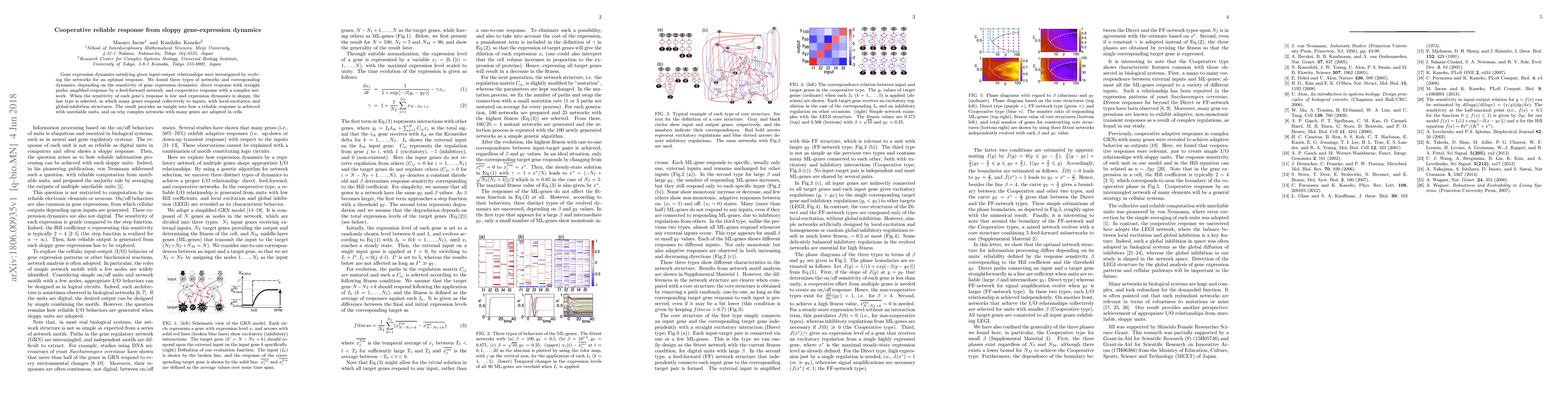 Gene expression dynamics satisfying given input-output relationships were investigated by evolving the networks for an optimal response. We found three types of networks and corresponding dynamics, depending on the sensitivity of gene expression dynamics: direct response with straight paths, amplified response by a feed-forward network, and cooperative response with a complex network. When the sensitivity of each gene's response is low and expression dynamics is sloppy, the last type is selected, in which many genes respond collectively to inputs, with local-excitation and global-inhibition structures. The result provides an insight into how a reliable response is achieved with unreliable units, and on why complex networks with many genes are adopted in cells.