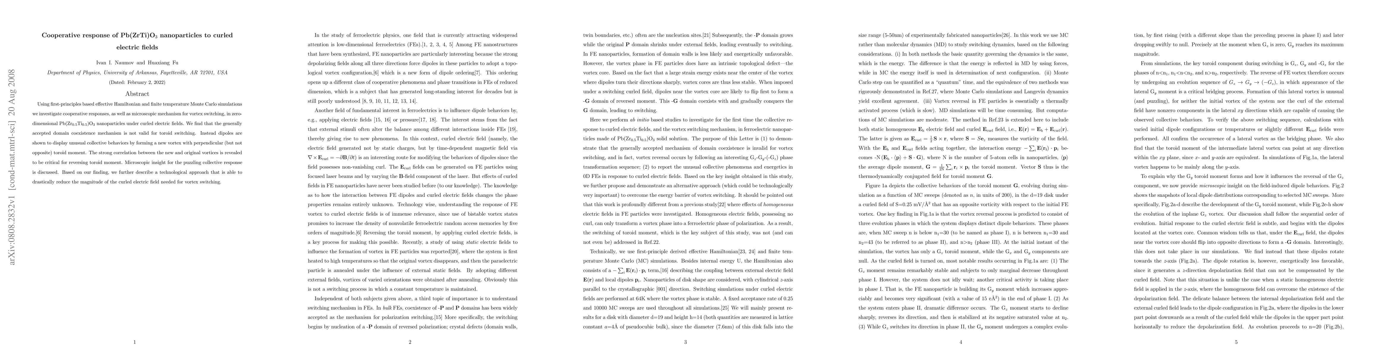 Researchers found that Pb(ZrTi)O$_3$ nanoparticles respond to curled electric fields by forming a new vortex with a perpendicular but not opposite toroid moment, contrary to previous theories. This new understanding could lead to the development of more efficient technologies for controlling the behavior of these particles.