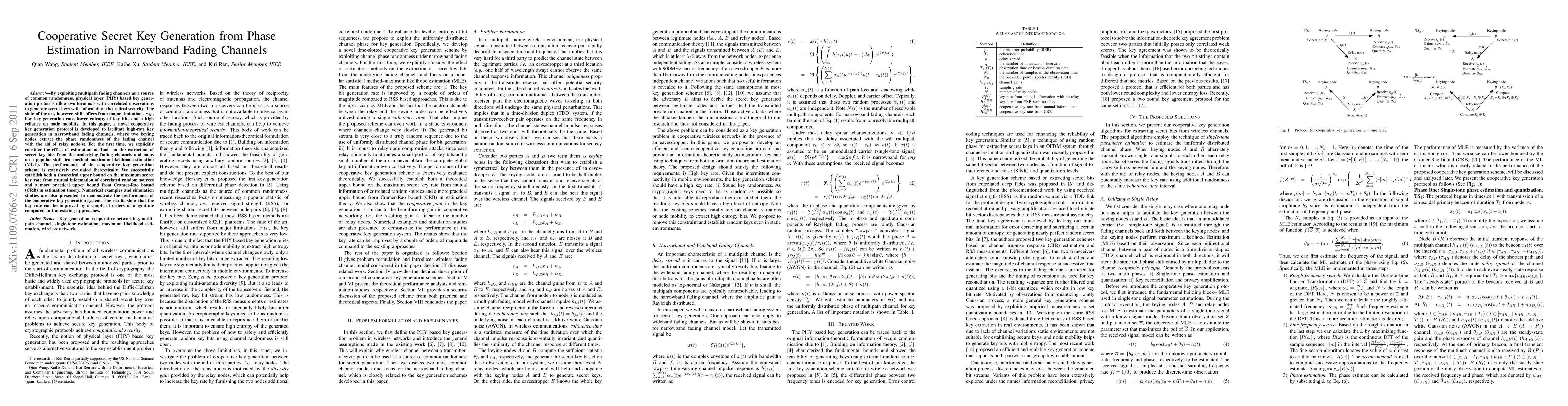 This paper introduces a novel cooperative key generation protocol for narrowband fading channels, leveraging phase estimation to improve secret key generation rates significantly. The proposed method uses relay nodes to enhance phase randomness extraction and employs maximum likelihood estimation, achieving a substantial increase in key rate compared to existing methods.