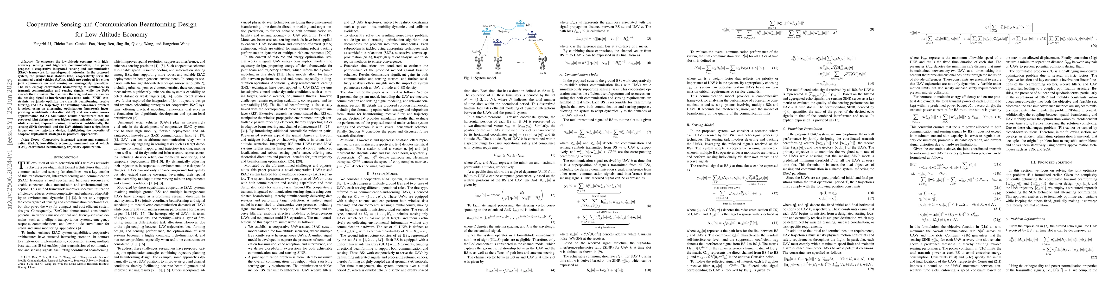 To empower the low-altitude economy with high-accuracy sensing and high-rate communication, this paper proposes a cooperative integrated sensing and communication (ISAC) framework for aerial-ground networks. In the proposed system, the ground base stations (BSs) cooperatively serve the unmanned aerial vehicles (UAVs), which are equipped for either joint communication and sensing or sensing-only operations. The BSs employ coordinated beamforming to simultaneously transmit communication and sensing signals, while the UAVs execute their missions. To maximize the weighted sum rate under the sensing signal-to-interference-plus-noise ratio (SINR) constraints, we jointly optimize the transmit beamforming, receive filtering, and UAV trajectory. The resulting non-convex problem is solved using an alternating optimization framework incorporating semidefinite relaxation (SDR) and successive convex approximation (SCA). Simulation results demonstrate that the proposed joint design achieves higher communication throughput while ensuring required sensing robustness. Additionally, the sensing SINR threshold and the UAV altitude have a significant impact on the trajectory design, highlighting the necessity of adaptive deployment strategies in practical applications.