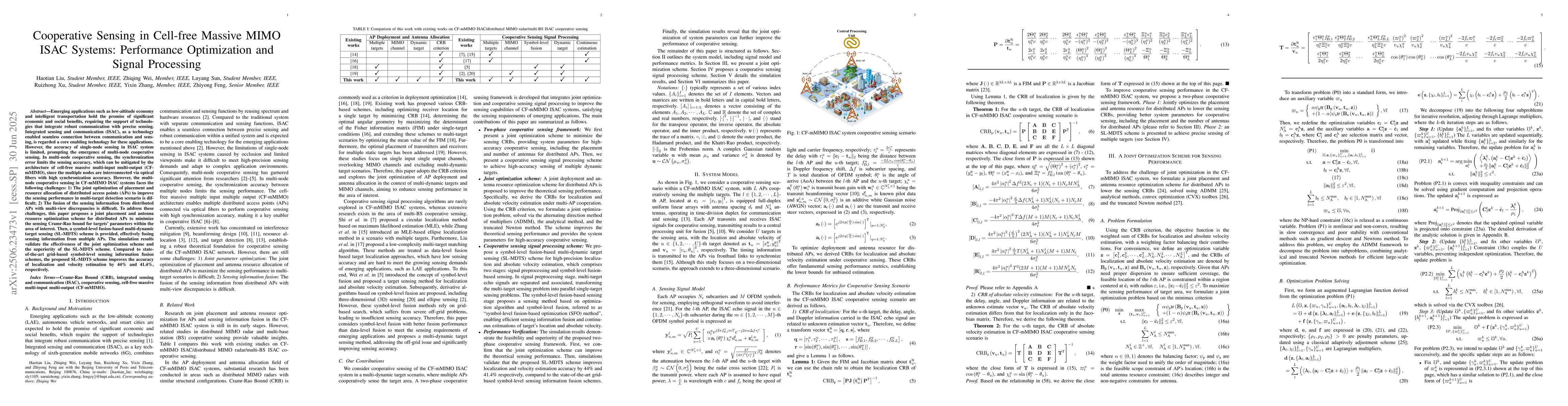 Integrated sensing and communication (ISAC), as a technology enabled seamless connection between communication and sensing, is regarded a core enabling technology for these applications. However, the accuracy of single-node sensing in ISAC system is limited, prompting the emergence of multi-node cooperative sensing. In multi-node cooperative sensing, the synchronization error limits the sensing accuracy, which can be mitigated by the architecture of cell-free massive multi-input multi-output (CF-mMIMO), since the multiple nodes are interconnected via optical fibers with high synchronization accuracy. However, the multi-node cooperative sensing in CF-mMIMO ISAC systems faces the following challenges: 1) The joint optimization of placement and resource allocation of distributed access points (APs) to improve the sensing performance in multi-target detection scenario is difficult; 2) The fusion of the sensing information from distributed APs with multi-view discrepancies is difficult. To address these challenges, this paper proposes a joint placement and antenna resource optimization scheme for distributed APs to minimize the sensing Cramr-Rao bound for targets' parameters within the area of interest. Then, a symbol-level fusion-based multi-dynamic target sensing (SL-MDTS) scheme is provided, effectively fusing sensing information from multiple APs. The simulation results validate the effectiveness of the joint optimization scheme and the superiority of the SL-MDTS scheme. Compared to state-of-the-art grid-based symbol-level sensing information fusion schemes, the proposed SL-MDTS scheme improves the accuracy of localization and velocity estimation by 44 % and 41.4 %, respectively.