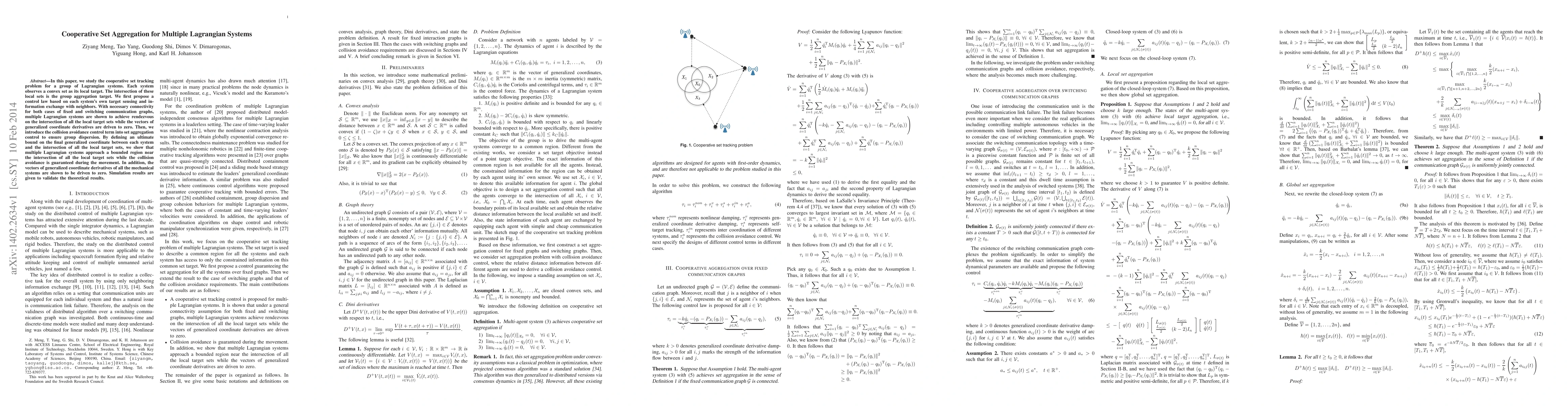 In this paper, we study the cooperative set tracking problem for a group of Lagrangian systems. Each system observes a convex set as its local target. The intersection of these local sets is the group aggregation target. We first propose a control law based on each system's own target sensing and information exchange with neighbors. With necessary connectivity for both cases of fixed and switching communication graphs, multiple Lagrangian systems are shown to achieve rendezvous on the intersection of all the local target sets while the vectors of generalized coordinate derivatives are driven to zero. Then, we introduce the collision avoidance control term into set aggregation control to ensure group dispersion. By defining an ultimate bound on the final generalized coordinate between each system and the intersection of all the local target sets, we show that multiple Lagrangian systems approach a bounded region near the intersection of all the local target sets while the collision avoidance is guaranteed during the movement. In addition, the vectors of generalized coordinate derivatives of all the mechanical systems are shown to be driven to zero. Simulation results are given to validate the theoretical results.