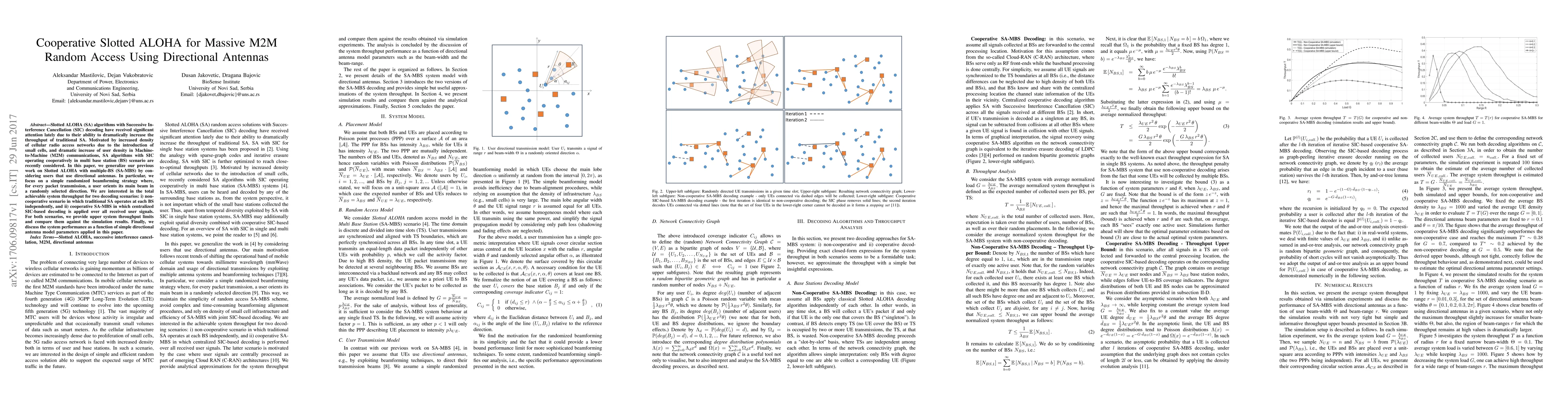 This paper generalizes Slotted ALOHA (SA) with Successive Interference Cancellation (SIC) for massive M2M communications using directional antennas in a multi-base station (BS) setup. It evaluates the total system throughput for both non-cooperative and cooperative decoding scenarios, providing upper limits and comparing them with simulations.