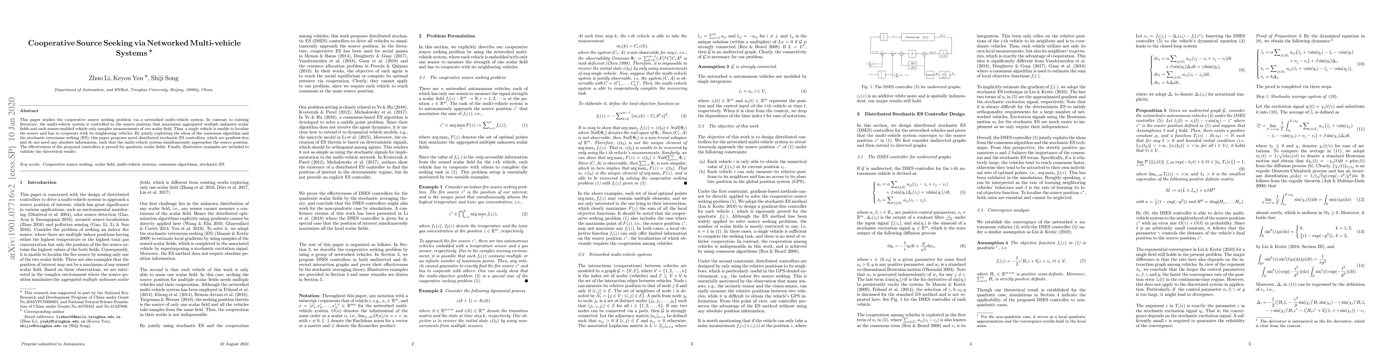 Researchers propose a new method for multi-vehicle systems to find a source by working together without needing absolute information about the location or shape of the field being sensed. The system uses distributed controllers that simultaneously approach the source position using only relative measurements.