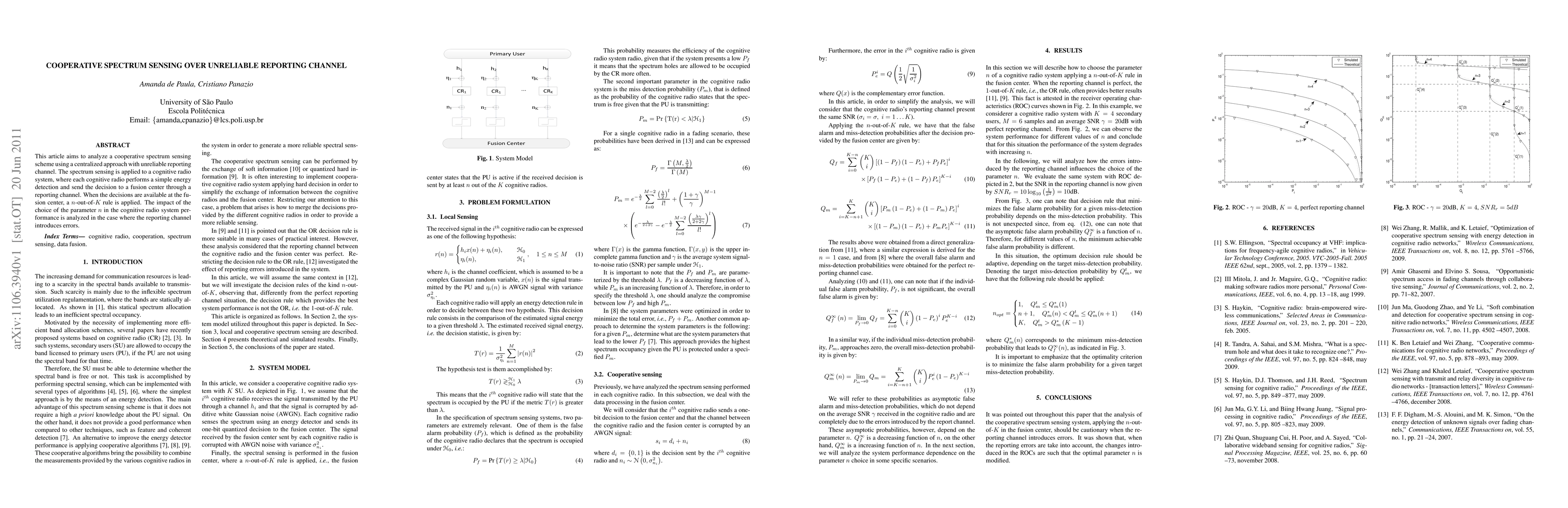 This paper examines a cooperative spectrum sensing scheme in cognitive radio systems using centralized fusion with unreliable reporting channels. It analyzes the impact of the n-out-of-K rule parameter on system performance under channel errors.