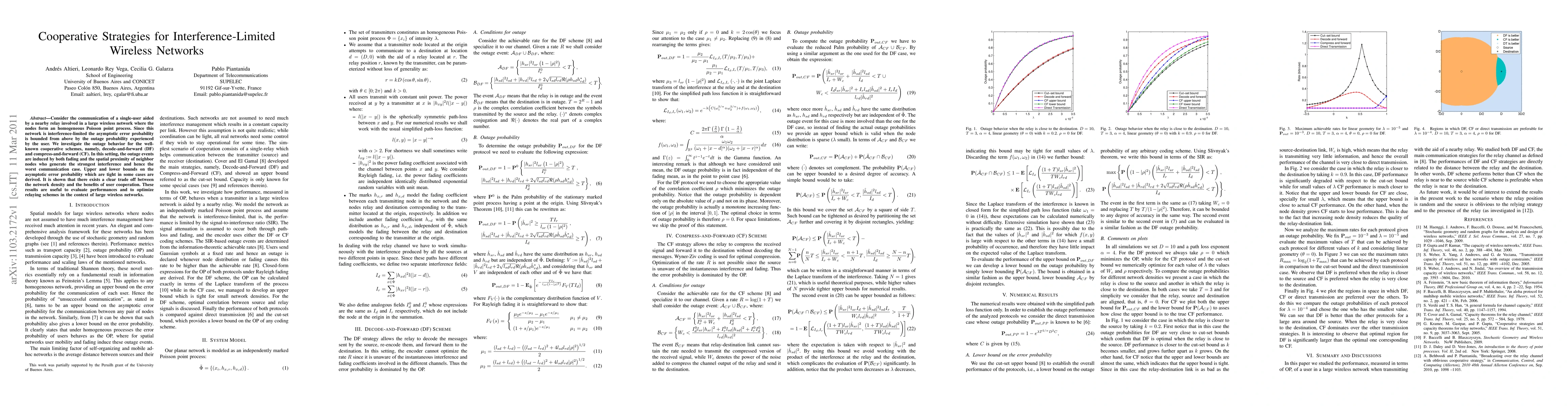 This paper explores cooperative relaying strategies in interference-limited wireless networks, focusing on decode-and-forward (DF) and compress-and-forward (CF) schemes. It derives bounds on the asymptotic error probability, highlighting the trade-off between network density and the benefits of user cooperation.