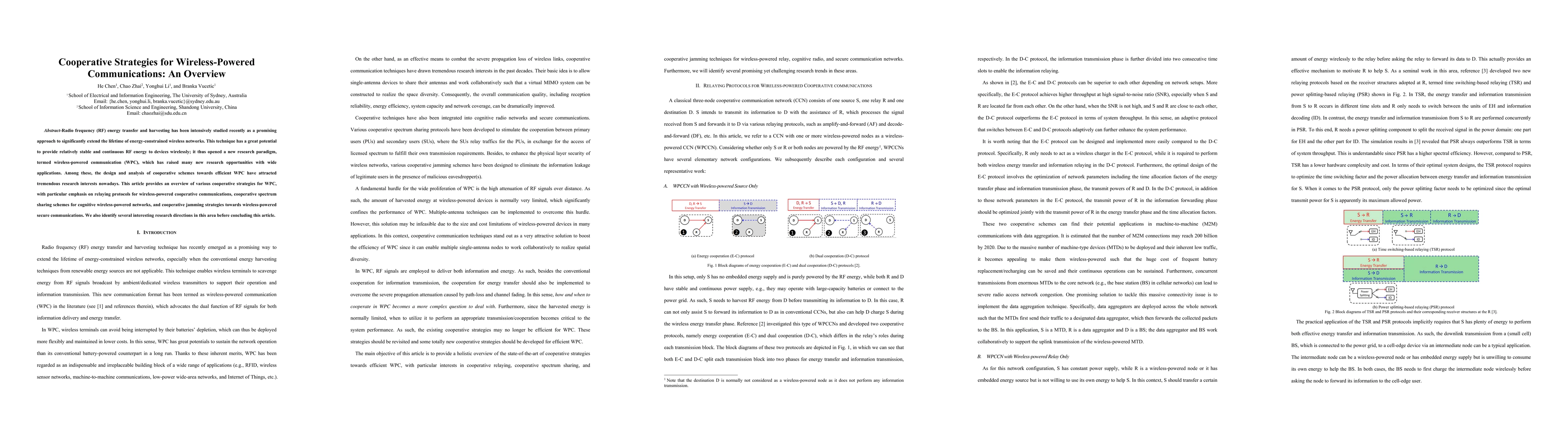 This paper reviews cooperative strategies for wireless-powered communication (WPC), focusing on relaying protocols, cooperative spectrum sharing, and cooperative jamming. It highlights current research trends and identifies future research directions.