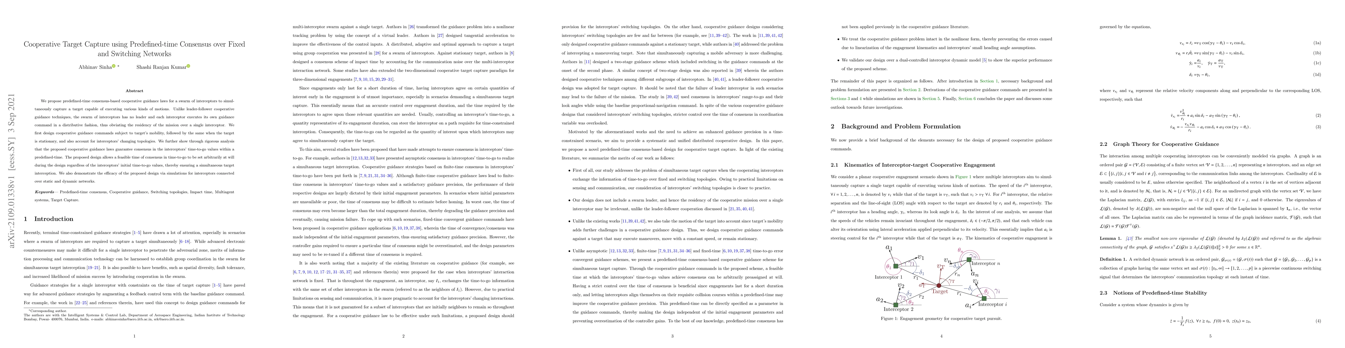 We propose predefined-time consensus-based cooperative guidance laws for a swarm of interceptors to simultaneously capture a target capable of executing various kinds of motions. Unlike leader-follower cooperative guidance techniques, the swarm of interceptors has no leader and each interceptor executes its own guidance command in a distributive fashion, thus obviating the residency of the mission over a single interceptor. We first design cooperative guidance commands subject to target's mobility, followed by the same when the target is stationary, and also account for interceptors' changing topologies. We further show through rigorous analysis that the proposed cooperative guidance laws guarantee consensus in the interceptors' time-to-go values within a predefined-time. The proposed design allows a feasible time of consensus in time-to-go to be set arbitrarily at will during the design regardless of the interceptors' initial time-to-go values, thereby ensuring a simultaneous target interception. We also demonstrate the efficacy of the proposed design via simulations for interceptors connected over static and dynamic networks.