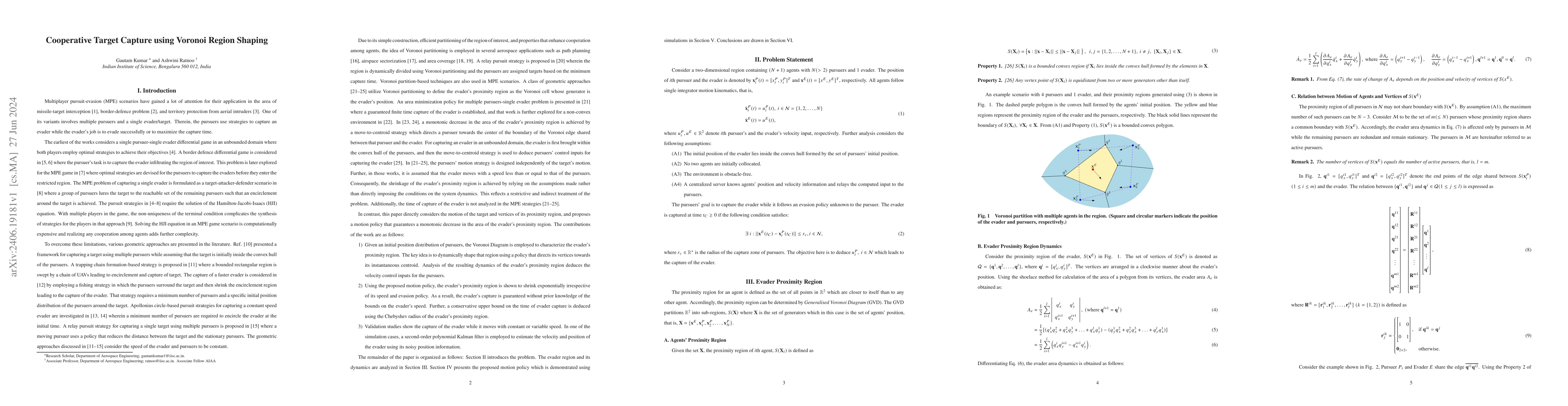 This paper proposes a cooperative strategy for multiple pursuers to capture a target by dynamically shaping Voronoi regions towards the target's centroid, ensuring an exponential shrinkage of the target's proximity region regardless of its speed or evasive maneuvers. Simulation results validate the effectiveness of the method.