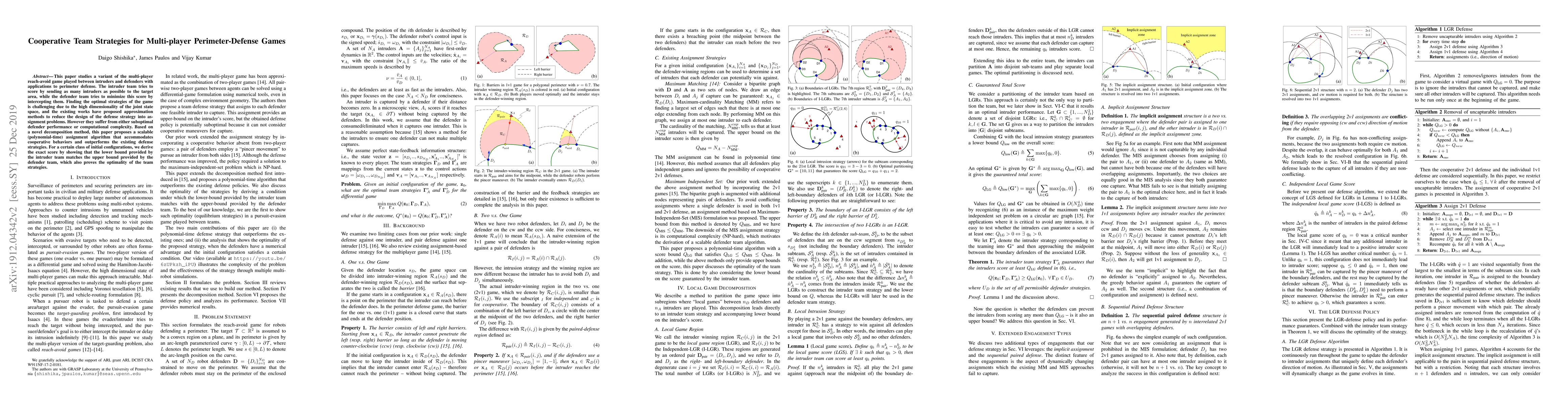 This paper proposes a scalable assignment algorithm for multi-player perimeter-defense games, improving upon existing methods by accommodating cooperative team strategies and achieving optimal performance. The novel decomposition method ensures polynomial-time computation and outperforms previous suboptimal strategies.