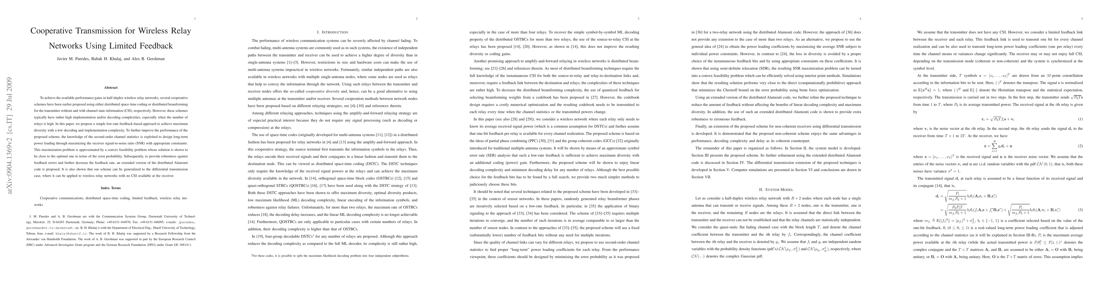 This paper proposes a low-complexity feedback-based cooperative scheme for half-duplex wireless relay networks to achieve maximum diversity, leveraging second-order channel statistics for power loading optimization. An extended distributed Alamouti code is introduced to enhance robustness against feedback errors and reduce feedback rate.
